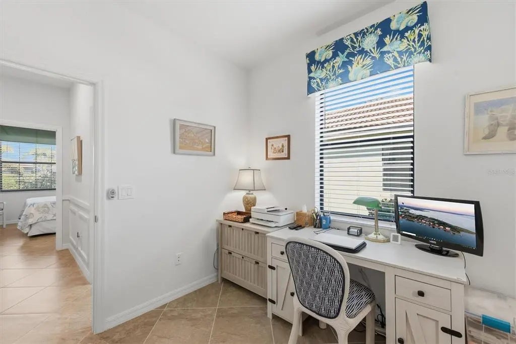Welcome to your dream retreat at 10475 Medjool Drive in the estimable Sarasota National Golf and Country Club! This stunning 4-bedroom, 3-bathroom home boasts tile flooring throughout, offering a seamless blend of elegance and functionality. Step into a bright, sun-filled space with southern exposure that floods the interior with natural light. The heart of the home features solid wood cabinets topped with granite countertops, complemented by convenient pullout shelves in the lower kitchen cabinets. Crown molding, chair rails, and decorative millwork add stylish touches throughout, while the primary bedroom showcases a striking feature wall for added style. Outside, enjoy ultimate relaxation in your private oasis: a heated saltwater pool overlooking a beautiful water view with a preserve beyond, ensuring total privacy. The rear lanai is equipped with a remote-controlled hurricane storm shade, accordion hurricane shutters, and a freshly re-screened lanai cage in 2024 for peace of mind during stormy seasons. Sarasota National is an Audubon Sanctuary-certified community, spanning over 1,300 acres of preserved lakes and conservation land, delivering breathtaking views and abundant wildlife right at your doorstep. Indulge in resort-style living with amenities including a fabulous pool, tennis courts, pickleball, bocce courts, a library and coffee lounge, and a 7,000 sq ft fitness facility—all part of a 30,000 sq ft clubhouse featuring a dining room, restaurant, and poolside tiki bar. This is more than a home—it’s a lifestyle. Don’t miss your chance to own this slice of paradise!