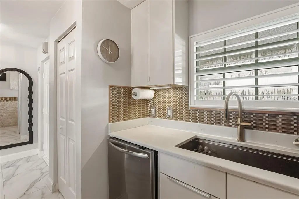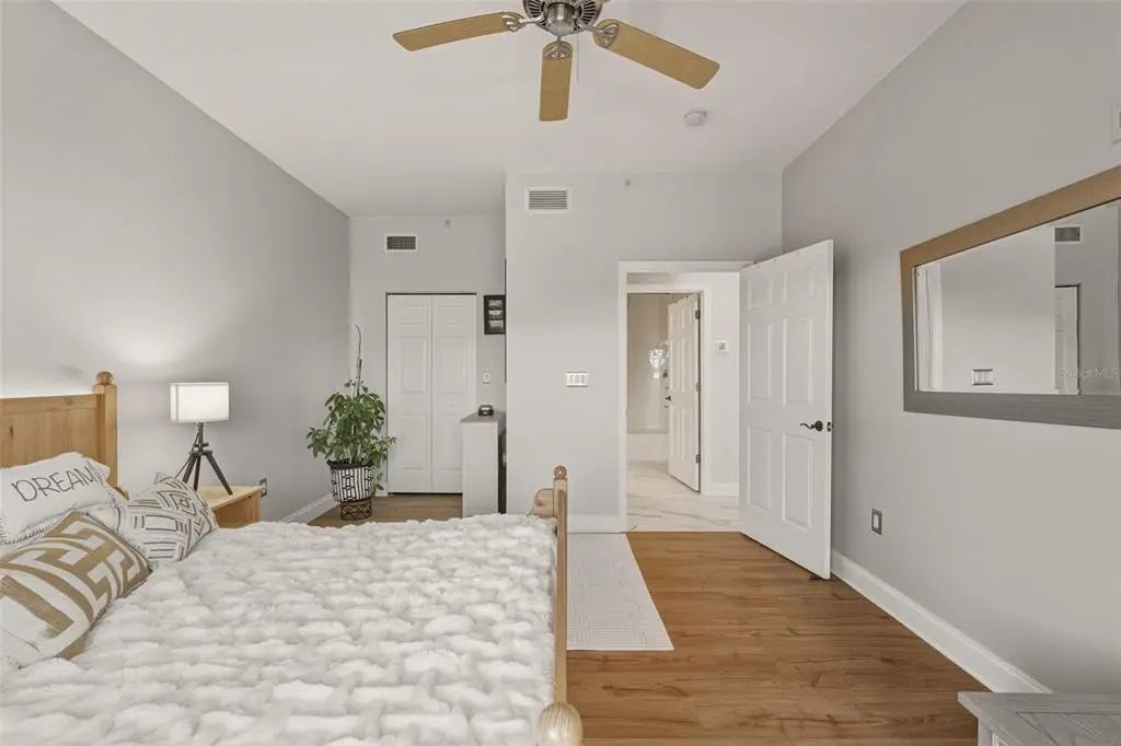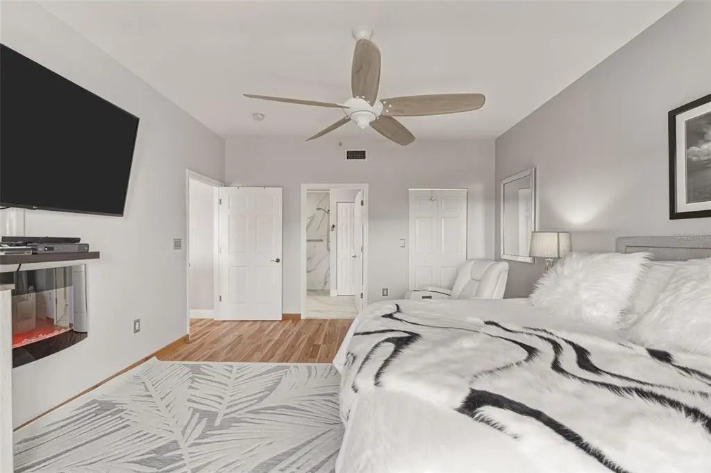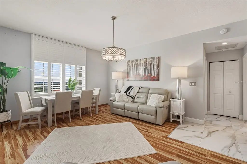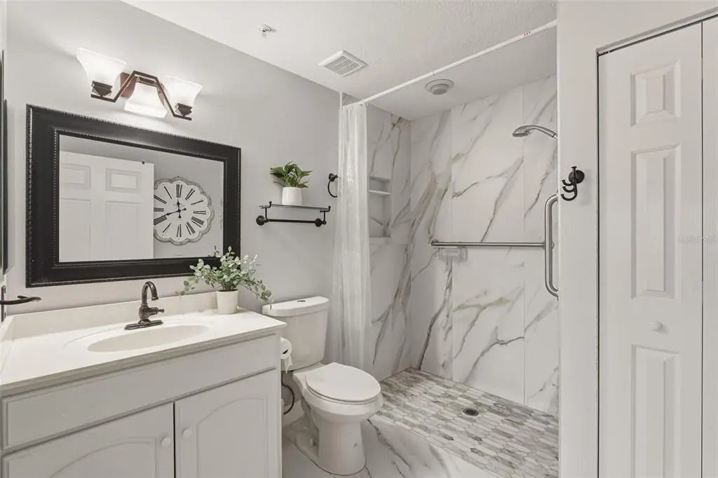 Welcome to Jacaranda Trace – Your Perfect 55+ Oasis in the heart of Venice, FL. ! Step into this beautifully renovated 2-bedroom, 2-bathroom condo located on the 6th floor of a 7-story building in the sought-after Jacaranda Trace community. The kitchen opens up to the bright and inviting living room/dining room combo. The primary suite is to the left with a generous walk-in closet, renovated ensuite bath, and expansive bedroom with screened balcony overlooking the fountains. To the right of the foyer you’ll find a guest bathroom and spacious guest bedroom. The guest bedroom has a screened balcony, walk-in closet, and plenty of room for a king-sized bed. Inside this condo, you’ll find luxurious upgrades such as plantation shutters, new flooring, updated light fixtures, and a gorgeous walk-in shower in the primary ensuite bath. The kitchen features quartz countertops, newer cabinets, newer stainless appliances, and closet pantry. Your $818 monthly condo fee covers an array of items to include basic cable, water, sewer, trash & recycling, pest control (inside and out), annual window washing, grounds maintenance, building insurance, 24 hour security, and an assigned parking spot in the garage. Just minutes to Venice Island which is known for its warm Gulf beaches, shopping, dining, tennis courts, dog park, dog beach, kid’s splash pad, parks/playgrounds, Sharky’s fishing pier & waterfront restaurants, weekly farmer’s market, tons of events, and so much more! Schedule your showing today and start living the Florida lifestyle! (See floorpan in photos)