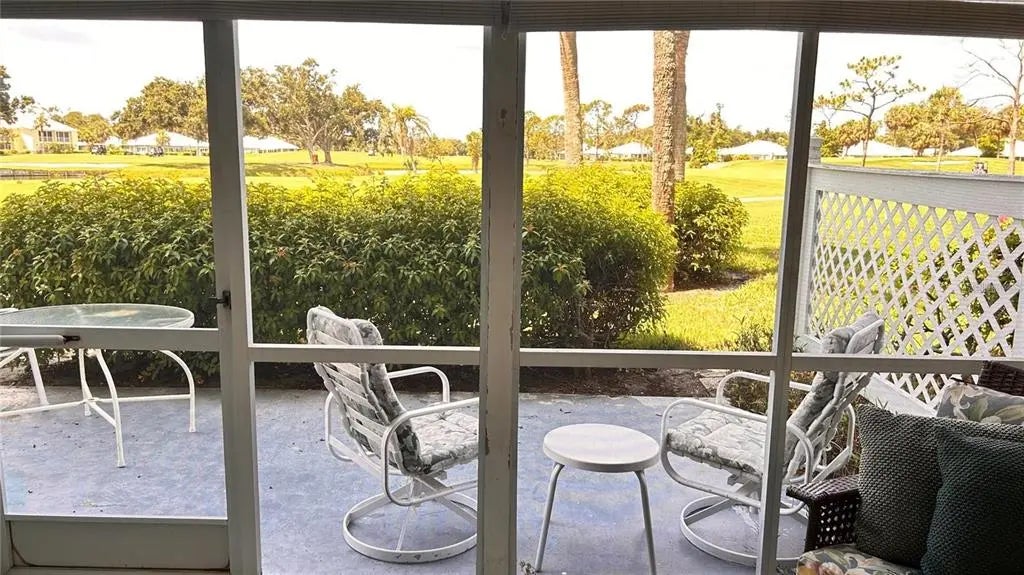 Turnkey Furnished. Welcome to Farmington Vistas in Plantation Golf & Country Club. This first-floor, fully furnished condominium offers easy access and peaceful fairway views in the heart of Venice. Enjoy the screened lanai plus an additional first-floor patio for outdoor living. Inside, the home features a renovated kitchen with roll-out cabinets, updated bathrooms, and new LVP flooring in the bedroom. Additional updates include a new convertible storm entry door and a water heater (2022). A stacked washer and dryer are located in the private ensuite primary bedroom. The property includes a covered carport and a spacious storage closet suitable for bikes, golf equipment, or beach gear. Residents have access to the community pool. Plantation Golf & Country Club membership is optional and offers golf, tennis, pickleball, fitness, dining, and social activities. Conveniently located near Venice beaches, shopping, dining, and entertainment. Call and schedule your private showing today.