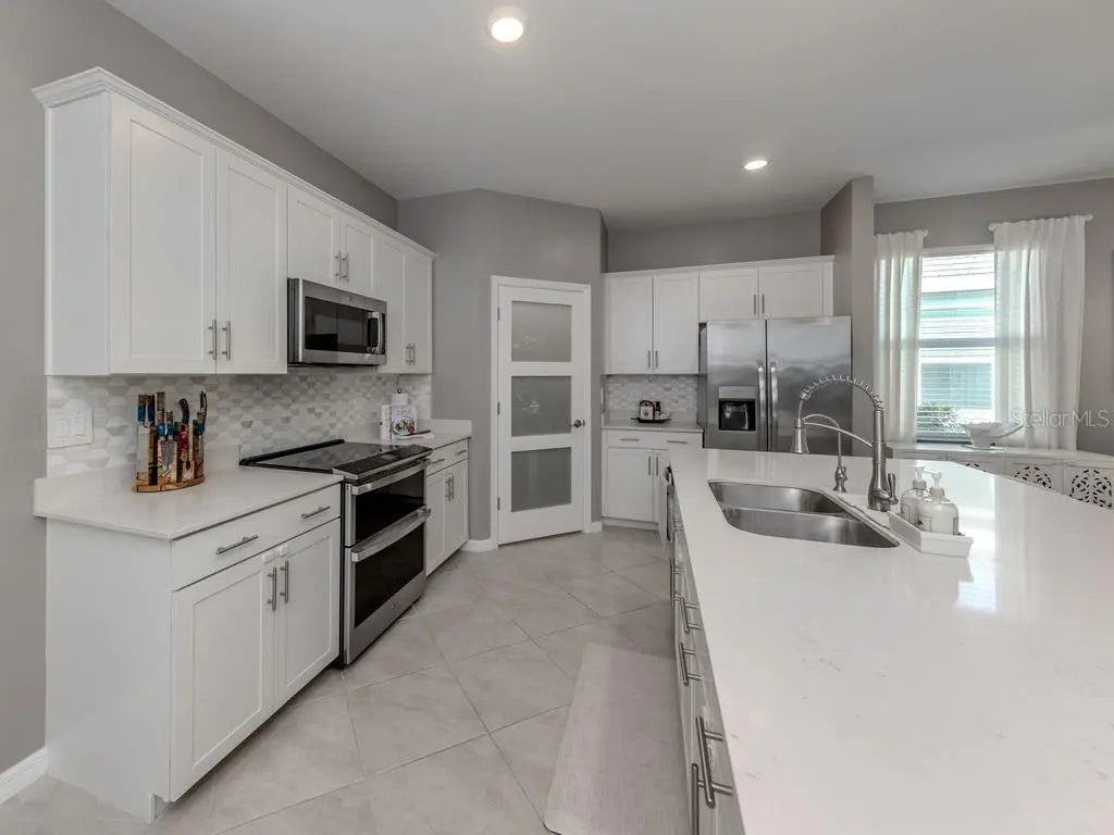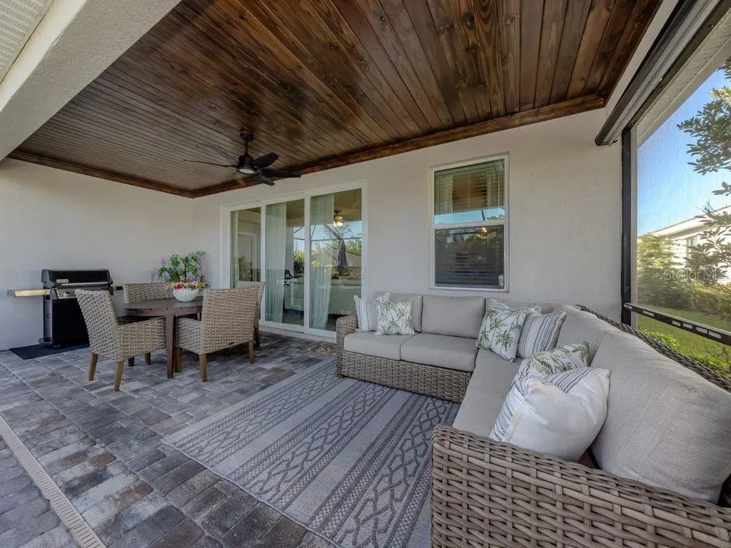Under contract-accepting backup offers. Experience the pinnacle of Florida living in this stunning new construction community located in Wellen Park, the fastest growing master-planned community in the state. This exquisite Marsala model features three bedrooms, three bathrooms, and a versatile den, providing ample space for family life and entertaining. Step outside to your own relaxing private heated pool and spa, perfect for those sunny Florida days. The home is packed with custom features and upgrades that elevate its appeal. You’ll find upgraded appliances, including a new washer/dryer, dishwasher, stove, and microwave hood. The stylish lanai boasts a beautiful wood ceiling and ceiling fan, complemented by privacy landscaping that enhances your outdoor space. Functional whole house gutters protect your investment, while the widened driveway, expanded by six feet, offers additional parking. Inside, you'll appreciate the new solid interior doors and closet doors, along with a stylish front door featuring a wood grain finish. Updated door hardware includes new exterior door handles and locks, including for the sliding doors. The home also offers efficient storage solutions with closet organizers and laundry cabinets, along with aesthetic enhancements such as accent walls and fresh paint throughout. Modern bathroom features include an added glass shower door in the second ensuite and new faucets for all sinks and showers. For your convenience, a Generator switch and fuse box, as well as a water softener and a reverse osmosis system with remineralizer, have been installed, ensuring a comfortable living experience. The kitchen is a chef’s dream with a beautiful backsplash that completes the look. This community is situated near beautiful beaches, local parks, and a vibrant dining scene. Downtown Wellen features a scenic lake, a splash pad perfect for families, a playground, and a bustling farmers market every Sunday. Don’t miss your chance to own this upgraded home in a prime location!