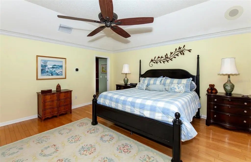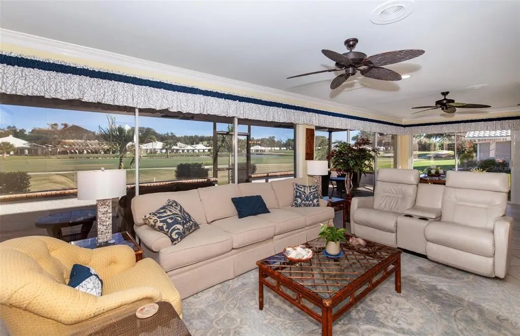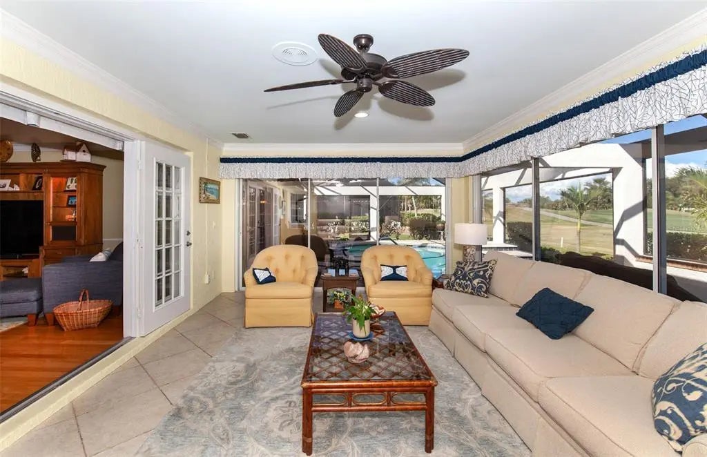 Paradise found on the 16th hole . . . a home designed for those who appreciate space, light, and the art of relaxed living. This bright, spacious, and thoughtfully designed 4-bedroom, 2.5-bath home is located in the gated Plantation Woods community at Plantation Golf & Country Club. With over 3,500 square feet under air, this home feels open, inviting, and filled with natural light, with a wall of sliding glass doors that frame panoramic views of the golf course and pond. The layout is a true split plan, offering maximum privacy and flow. The sprawling primary suite feels like its own private retreat! Close the pocket doors and you’ve got five rooms all to yourself: a large bedroom, renovated, spa-inspired bath, office, an oversized walk-in dressing room (even the closet has a closet!), and a flexible bonus room with direct pool access. The kitchen stretches across 25 feet of cabinetry and quartz countertops, blending beauty and function with high-end appliances, including a GE Monogram wine cooler and dual ovens. The open design connects seamlessly to dining and living areas, perfect for everyday living or hosting friends. Enjoy morning coffee and evening sunsets in the air-conditioned Florida room with motorized blinds, or relax by the Pebbletec pool surrounded by a new paver deck, cage, and heat pump. Every detail of this home, from lighting to fixtures, has been carefully updated. Optional Membership is available at Plantation Golf & Country Club that includes 2 Championship golf courses, 13 tennis courts, 6 pickleball courts, bocce, Jr Olympic Pool with tiki bar, and a full-service restaurant which features LIVE entertainment every week year-round!!! There are many member activities throughout the year. All this in a sought-after golf course setting close to both Wellen Park and Historic Downtown Venice, and our gorgeous Gulf Coast beaches. Schedule your private tour today and see how this home blends comfort, style, and space in one exceptional package.
