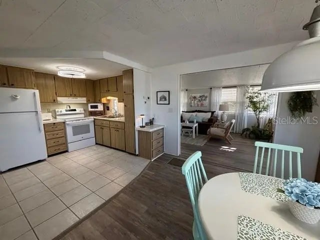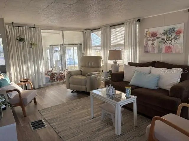 Discover the perfect blend of convenience and cozy charm in this beautifully upgraded 2-bedroom, 1.5-bathroom home. Situated on a spacious corner lot with a serene water view, this residence is designed for both relaxation and entertaining. Step into a bright, open, and efficient kitchen and dining area that flows seamlessly through an archway into the main living room. The interior features a modern mix of durable tile and updated luxury vinyl plank flooring. The guest bedroom doubles perfectly as a high-quality, comfy queen size pull out sofa for visitors. The "crown jewel" of this home is the large 12x18 sun-drenched Florida room. Fully equipped with air conditioning and heat, this versatile space is perfect for enjoying your morning coffee or evening cocktails while soaking in the water views, regardless of the season. Located in a vibrant 55+ community with full clubhouse amenities, this move-in-ready gem offers the active, carefree lifestyle you've been looking for. This beautiful community is located on Venice island. Enjoy the heated pool with water aerobics and exercise classes, Country Club Estates has two clubhouses. Both with kitchens . One clubhouse has a stage for bands and performances. The other overlooks the waterway with rented boat slips for the residents. From the boat club to the book club, you will probably find it here. Pickleball, shuffleboard, corn hole, billiards, ping pong, library, fitness center, most card games, karaoke, events planned for the holiday, local bands and DJ's for dances, neighborhood parades and scavenger hunts. Too many to list. This is not just a place to live--it is a lifestyle. GOLF CART INCLUDED