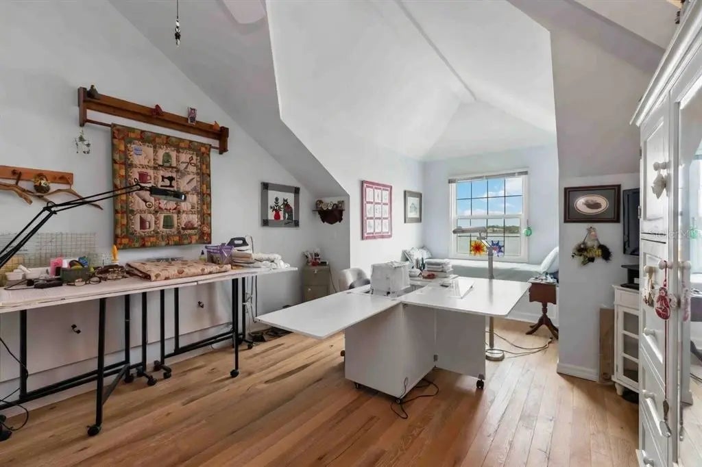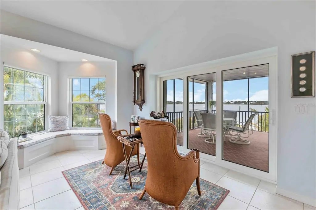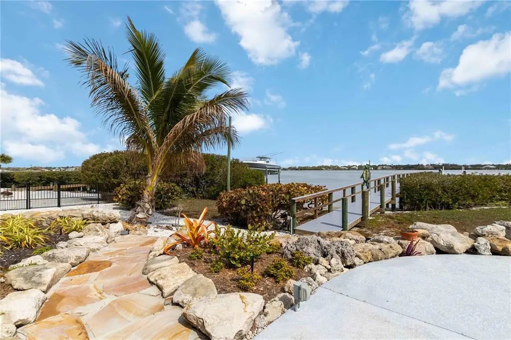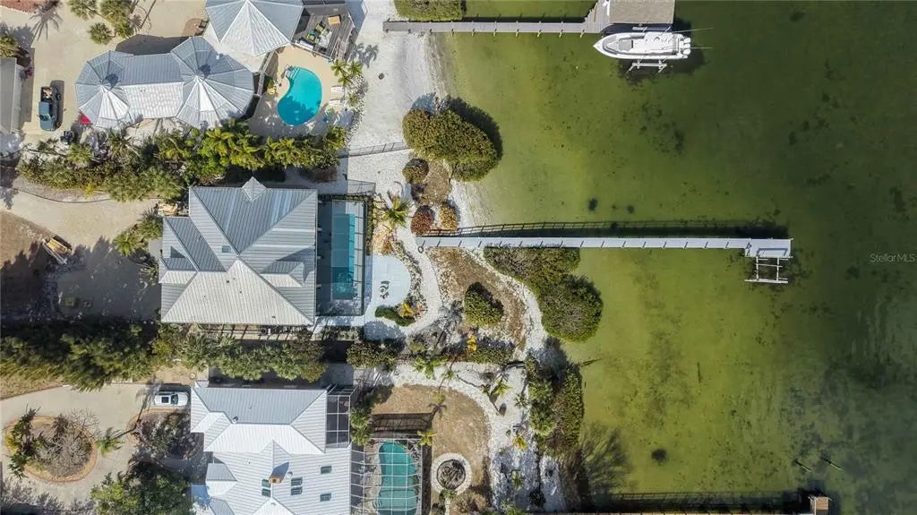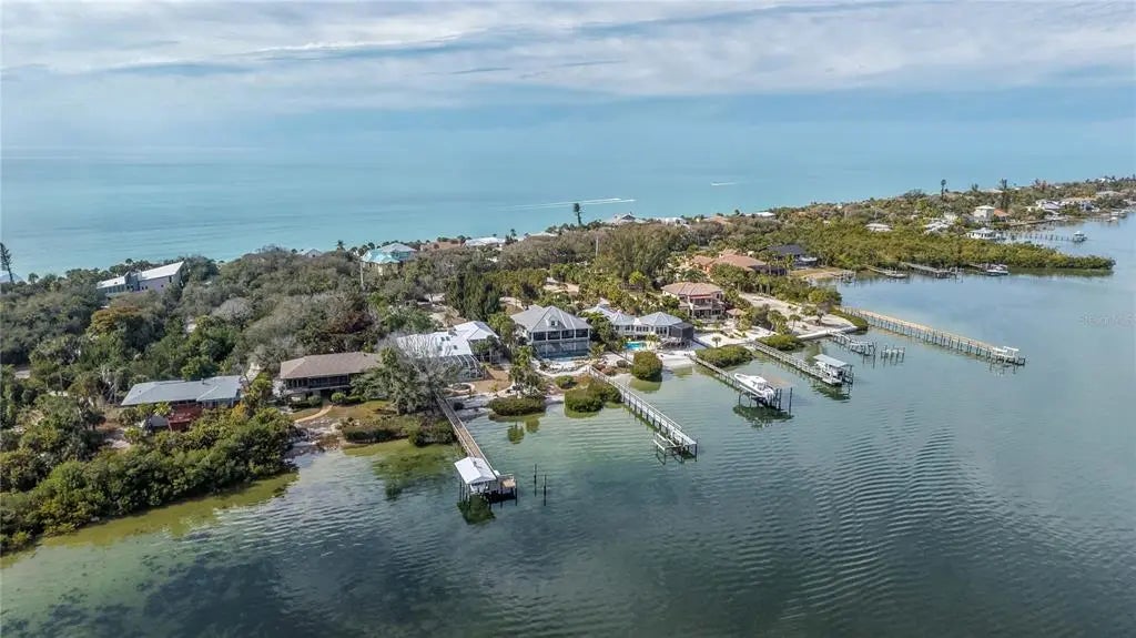 Picture pulling up your own palm-lined private drive on nearly an acre of premier Manasota Key waterfront. Right away, you feel that sense of arrival—this is your exclusive slice of paradise. Step inside this custom-built 4-bedroom, 4-bath bayfront gem, and the first thing that hits you is the light. Soaring vaulted ceilings, bold angles, and walls of glass pour in natural sunshine, making every room feel open, bright, and effortlessly sophisticated. Front and rear balconies let you step out into the tropical breeze, surrounded by lush greenery and the gentle sounds of the area. The heart of the home is the seamless open layout: a grand living room flooded with that gorgeous natural light, flowing right into the dining area, chef’s kitchen, and primary suite. Everything opens to a full-width screened balcony overlooking the expansive 40+ foot heated pool, brand-new deep-water dock (installed 2025), and tranquil Lemon Bay—perfect for hosting sunset gatherings or just relaxing year-round with the water right there. You’ll love the chef’s kitchen—equipped with premium appliances, beautiful quartz countertops, and direct bay views so you never miss the action on the water. The spacious primary suite feels like a true retreat: step out to the screened porch for panoramic bay vistas, then unwind in the spa-like bath with dual vanities and a huge walk-in shower. There’s a flexible main-level guest bedroom that’s perfect as an office, studio, or extra space. The home is thoughtfully elevated for coastal protection, with the state-of-the-art elevator (installed 2023) providing seamless access from the garage directly to the first (main living) floor. Upstairs, two mirrored guest suites offer soaring ceilings, charming dormer windows, and cozy window-seat alcoves—great private getaways for family or guests. Outside, it’s pure resort living: an expansive 40+ foot heated pool with a full bath and outdoor shower, a private workshop for your hobbies or projects, and a backyard deck leading to your sandy shoreline—ideal for launching paddleboards, kayaks, or just kicking back barefoot. Best of all, you have private deeded beach access to the pristine Gulf of Mexico, so those sugar-sand beaches and turquoise waters are just steps away for ultimate convenience. The oversized 4-car garage with tall ceilings and tons of built-in storage handles vehicles, an RV, boats, or toys—you name it. And then there’s Lemon Bay itself: pristine, protected waters alive with playful bottlenose dolphins, graceful manatees, soaring brown pelicans, elegant herons and egrets, cormorants, and so much more. You’ll catch these moments right from your backyard—nature’s show, every day. This rare bay-to-Gulf property on exclusive Manasota Key gives you total privacy, real distinction, and that seamless indoor-outdoor Florida lifestyle—with the added bonus of your own private path to the Gulf. It’s not just a house—it’s where breathtaking views and relaxed luxury come together to create something timeless for you and your family.