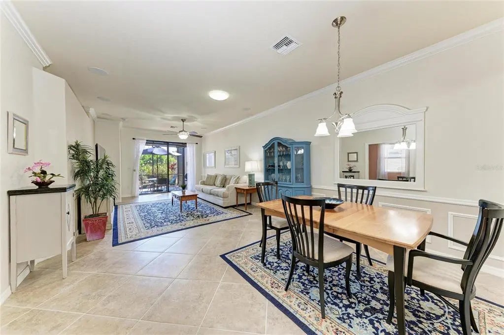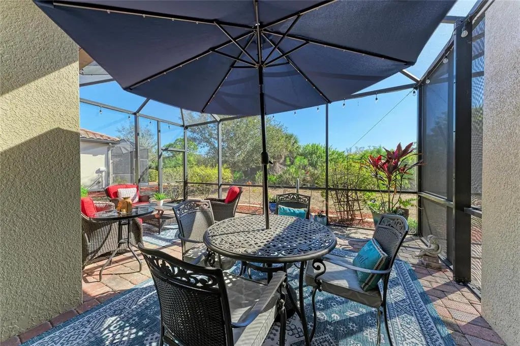 Welcome to this attractive villa in the gated, Tuscan-inspired community of Grand Paradiso. Ideally situated on our private preserve lot, this light-filled residence offers an open concept floor plan with diagonal porcelain tile flooring, crown molding, and updated LED lighting throughout. The extended lanai is a true highlight, featuring a motorized or retractable Kevlar hurricane screen and a tranquil preserve view, creating the perfect space for seamless indoor/ outdoor living year-round. The kitchen is equipped with granite countertops, a tile backsplash, under-cabinet lighting, a solar tube for natural light, an upgraded garbage disposal, and a new microwave (2025). The dining area features decorative wainscoting and a dimmable chandelier, flowing into a spacious living room with surround sound and abundant natural light. The primary suite features crown molding and a spa-style bath with solar tube lighting and a Gerber comfort-height toilet. The guest bath includes a walk-in shower with safety bars (added 2025). Additional features include a 2019 water heater, a whole-home water treatment system, ample garage storage, and pre-wiring for a future lanai hot tub. Enjoy maintenance-free living with resort-style amenities, including pool, spa, fitness center, tennis, pickleball, and an active social calendar. HOA fees includes free basic cable and Internet, and roof repair/replacement. All conveniently located near beaches, dining, shopping, golf, and downtown attractions. Can be sold furnished/turnkey-ready.