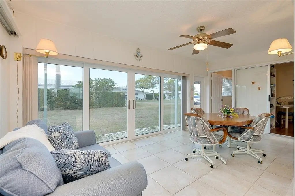 VALUE, UPGRADES, MOVE-IN READY ~ Welcome to this beautifully maintained 3-bedroom, 2-bath Floridian model villa in the highly desirable Circle Woods community. Offered turnkey furnished, this standalone residence showcases tile and laminate flooring throughout and numerous thoughtful updates including a new A/C and Water Heater, updated kitchen with granite countertops and recessed lighting. The spacious primary suite features private sliders to the lanai and an updated bath with a glass-enclosed shower and vanity. Hurricane-impact sliders on the lanai provide exceptional ventilation and peace of mind, creating the perfect space to relax or entertain. The comfortable floor plan offers flexibility for guests, a home office, or seasonal living. An interior laundry room adds convenience, and the overall condition reflects pride of ownership throughout. Circle Woods is a welcoming, maintenance-free community with no age restrictions, ideal for both snowbirds and full-time residents. Enjoy two heated pools, spa, sauna, fitness room, clubhouse, library, game room, shuffleboard, horseshoes, and bocce. Lawn maintenance is included for easy Florida living. Located just minutes from Manasota Key and Venice beaches, shopping, dining, and the Atlanta Braves spring training facility, this home offers both lifestyle and location. Monthly condo fee: $420, ($100 application fee, non-refundable), Must own two years prior to leasing, one medium pet permitted. If you’re looking for comfort, community, and exceptional value — this outstanding Circle Woods villa is a must-see.