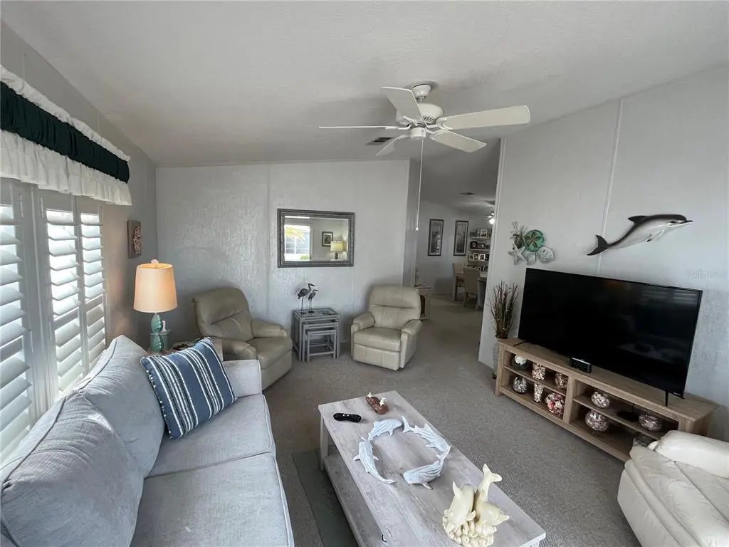 Home is built with upgraded new construction standards for hurricanes for year built 2000. Lovely front porch, A large side Florida Room with vinyl windows and tons of storage start off the immaculate home. 2 Car side by side parking on the added pavers, Inside you have Vaulted ceilings, open floor plan, eat in kitchen with bar counter too. New roof over in 2023, new AC in 2023, New refrigerator for the kitchen, sky lights in the master bath. Washer dryer inside the home gives added convenience. The master bedroom has huge walk in closets and an oversized master bathroom. Venice Isle is the premier resident owned over 55 Mobile home Park in Venice. There are close to 1000 homes with the most active residents. There is always something going on for you to do. We have many Park gatherings and first rate shows on site. The Park has every amenity you can imagine. Come take a walk through both of our 2 clubhouses and make yourself at home. The Park has 2 tennis courts, a fitness center, 2 heated pools, 2 hot tubs, saunas, putting greens, shuffleboard, Bocce ball, miniature golf, art rooms, pool room, TV lounges, card rooms, library, horseshoes, ceramic kilns, 2 huge ballrooms, Sunday services and much more!