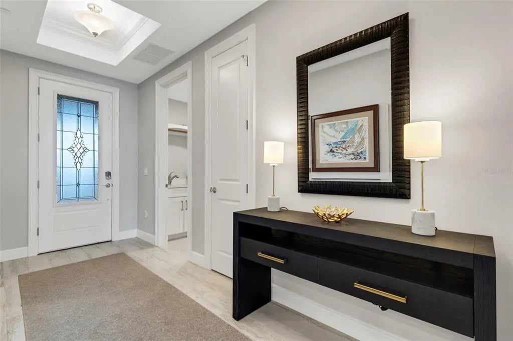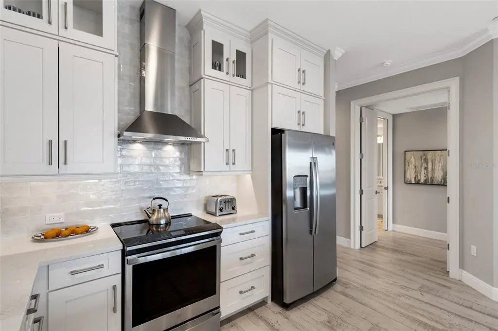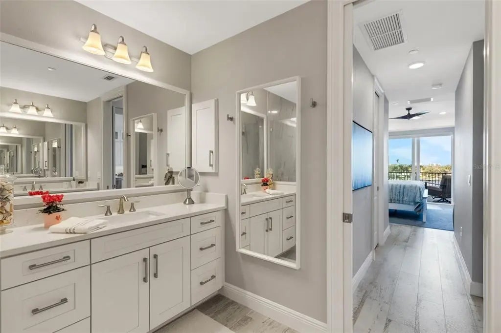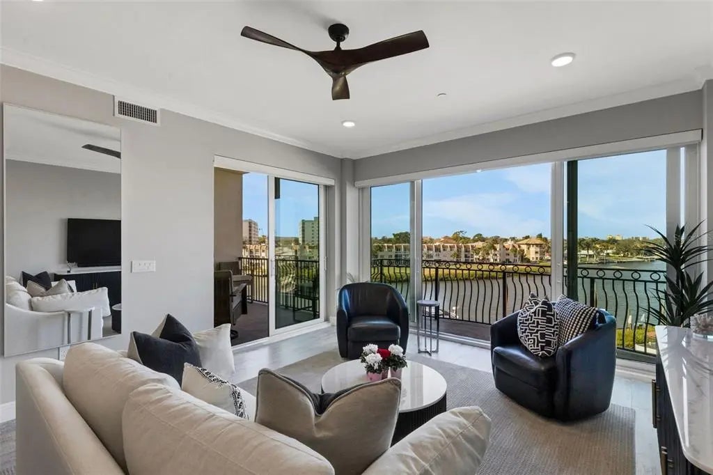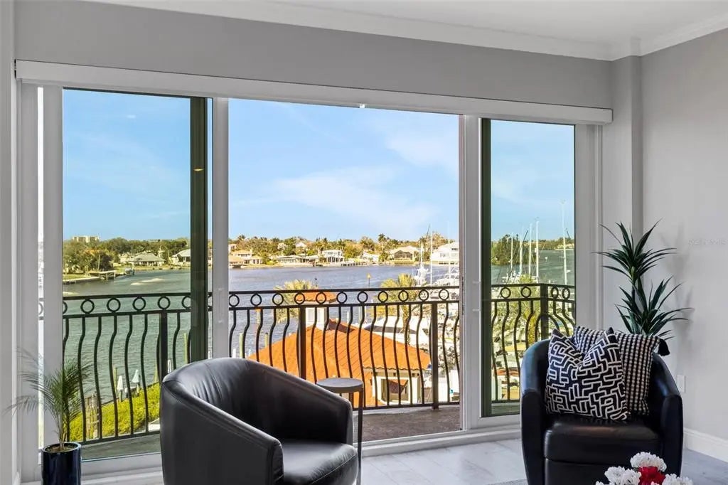 Newly constructed luxury condominium offering breathtaking, unobstructed panoramic views of the Marina, Intracoastal Waterway, and the Gulf of Mexico. Encompassing nearly 2,000 square feet of impeccably designed living space, this exceptional residence seamlessly blends modern elegance with coastal sophistication. Featuring three generously sized bedrooms and two beautifully appointed bathrooms, the home is enhanced by soaring 12-foot ceilings, expansive windows that flood the space with natural light, and an open-concept layout perfect for both everyday living and entertaining. No detail was overlooked in the design and construction of this remarkable property. High-end finishes and thoughtful upgrades are evident throughout, including Timberlake custom cabinetry, Moen faucets and fixtures, Level 4 plank tile flooring throughout the entire residence, 2-panel solid core doors, Sherwin Williams interior paint, and stunning colonial crown tray ceilings that add architectural character. The chef-inspired kitchen is a true centerpiece, complete with GE Profile stainless steel appliances, a stylish Glazzio backsplash, elegant Keiran fixtures, and abundant cabinetry and counter space. Every element reflects quality craftsmanship and timeless design, as the owners spared no expense in creating a refined yet comfortable living environment. The spacious primary suite offers a private retreat with tranquil water views, a luxurious en-suite bath, and ample closet space. The additional bedrooms are equally inviting, ideal for guests, a home office, or a personal fitness space. An oversized private balcony provides the perfect setting to enjoy morning coffee, evening sunsets, or simply relax while taking in the stunning waterfront scenery. This residence also includes a private, two-car enclosed garage located beneath the building, providing added security and convenience, along with ample guest parking for visitors. A fully secured elevator and stairwell offer direct access from the garage level to your designated floor, ensuring both privacy and ease of access. Residents of Porto Vista, a boutique community of only 40 exclusive units, enjoy a peaceful and refined lifestyle in an intimate setting. Resort-style amenities include a heated swimming pool with cabana, a charming poolside gazebo ideal for relaxing or socializing, and beautifully maintained grounds that enhance the overall ambiance of the community. Perfectly situated in the heart of Venice, this property is just a short stroll from Historic Downtown Venice, where you’ll find charming boutiques, award-winning dining, live entertainment, and year-round community events. It is also conveniently located near pristine Gulf beaches, premier golf courses, shopping centers, and multiple marinas—including the one right out front at Fisherman’s Wharf—making it a dream location for boating enthusiasts and outdoor lovers alike. This is a rare opportunity to own a pristine, move-in-ready condominium in one of Venice’s most desirable waterfront locations. With its luxurious finishes, secure amenities, and unparalleled views, this extraordinary residence truly offers the best of Florida coastal living. Don’t miss your chance to experience it for yourself—schedule your private showing today.