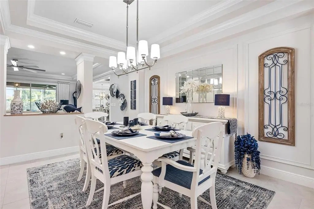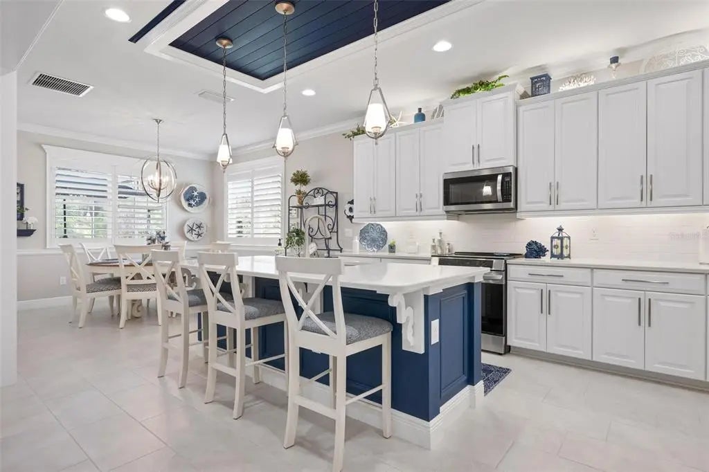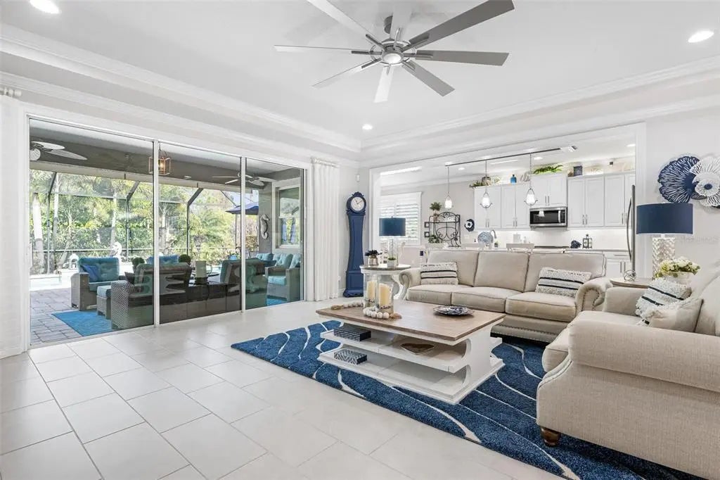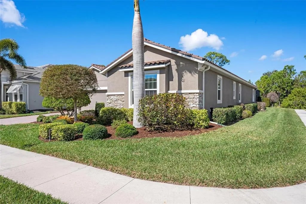 Under contract-accepting backup offers. Professionally decorated and beautifully upgraded, this stunning Mattamy “Nantucket” floor plan in the gated, maintenance-free Renaissance community of Wellen Park shows like a builder’s model. Situated on a quiet, private lot at the end of the street and featuring one of the community’s more favorable HOA fees, this home offers exceptional value, design, and lifestyle. A paver driveway and welcoming courtyard entry set the tone for what awaits inside. The thoughtfully designed split floor plan offers 4 bedrooms (or 3 bedrooms plus a den), 3 full baths, a spacious great room, formal dining area, and a generous kitchen dinette. Crown molding throughout, coffered and tray ceilings, porcelain plank flooring, upgraded cabinetry, and quartz countertops elevate the home’s elegant interior. The chef’s kitchen features raised panel cabinetry, stainless steel appliances, a large center island with seating, and an adjoining pantry/coffee room complete with additional cabinetry, counter space, wine rack, and wine refrigerator—ideal for entertaining and everyday convenience. Sliding glass doors open to an expansive screened lanai designed for year-round enjoyment. The heated pool with soothing water feature, built-in serving area with wall cabinet for a television, and retractable awning with LED lighting create a private outdoor retreat perfect for relaxing or hosting gatherings. Additional highlights include hurricane protection for peace of mind, a 3-car garage with pull-down stairs to plywood-floored attic storage in the 2-car bay, and extra shelving in the separate 1-car garage. Residents of Renaissance enjoy resort-style amenities including a clubhouse with a full calendar of social activities, pool, fitness center, pickleball and tennis courts, bocce ball, walking and biking trails, a playground and a dog park. Located across from CoolToday Park, the spring training home of the Atlanta Braves, and just minutes to Downtown Wellen Park with dining, shopping, entertainment, and community events. Convenient access to area beaches, golf courses, Costco, and I-75 provides easy connectivity to Sarasota and surrounding areas. Experience refined Florida living in one of Wellen Park’s most desirable communities.