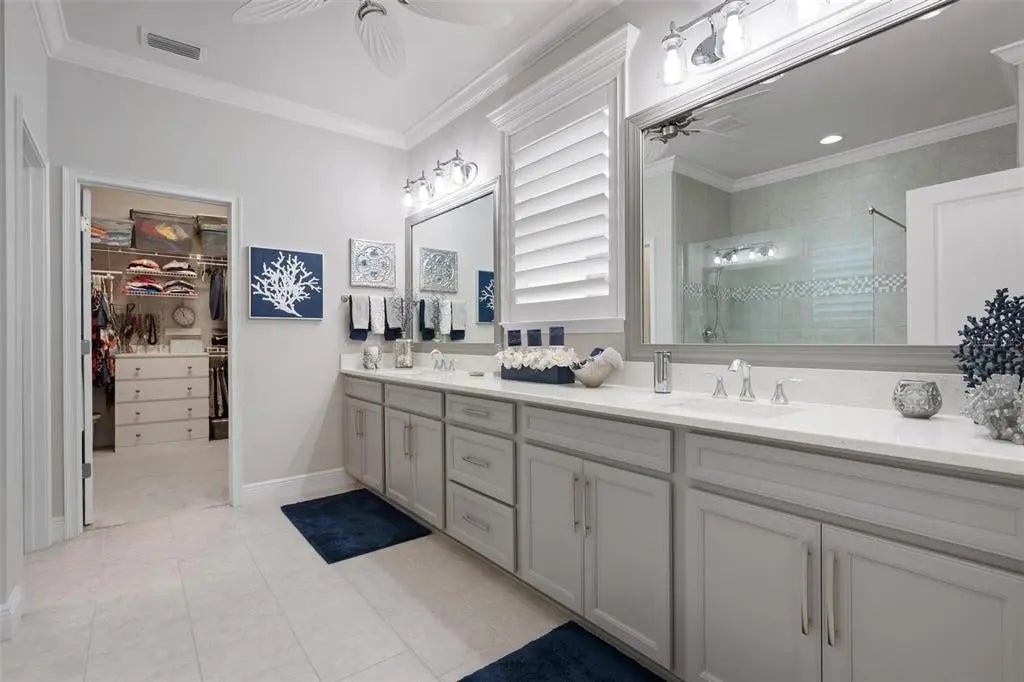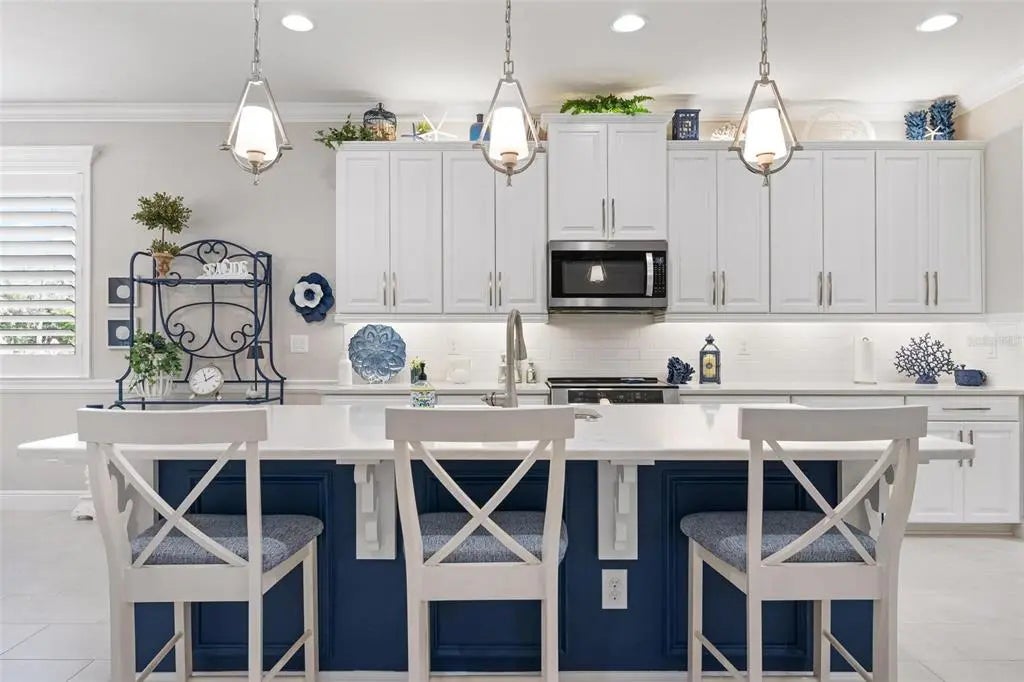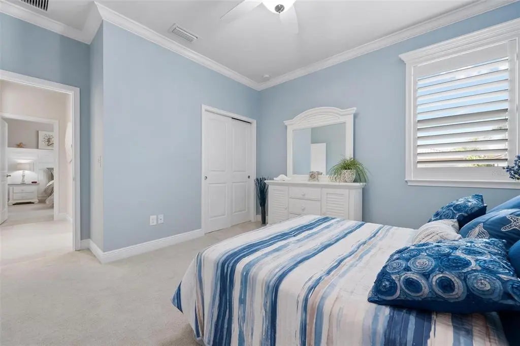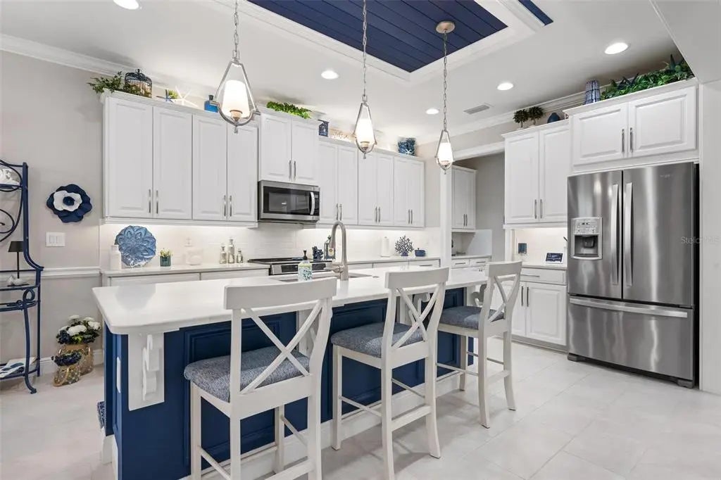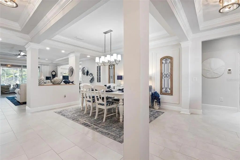 Under contract-accepting backup offers. Professionally decorated and beautifully upgraded, this stunning Mattamy “Nantucket” floor plan in the gated, maintenance-free Renaissance community of Wellen Park shows like a builder’s model. Situated on a quiet, private lot at the end of the street and featuring one of the community’s more favorable HOA fees, this home offers exceptional value, design, and lifestyle. A paver driveway and welcoming courtyard entry set the tone for what awaits inside. The thoughtfully designed split floor plan offers 4 bedrooms (or 3 bedrooms plus a den), 3 full baths, a spacious great room, formal dining area, and a generous kitchen dinette. Crown molding throughout, coffered and tray ceilings, porcelain plank flooring, upgraded cabinetry, and quartz countertops elevate the home’s elegant interior. The chef’s kitchen features raised panel cabinetry, stainless steel appliances, a large center island with seating, and an adjoining pantry/coffee room complete with additional cabinetry, counter space, wine rack, and wine refrigerator—ideal for entertaining and everyday convenience. Sliding glass doors open to an expansive screened lanai designed for year-round enjoyment. The heated pool with soothing water feature, built-in serving area with wall cabinet for a television, and retractable awning with LED lighting create a private outdoor retreat perfect for relaxing or hosting gatherings. Additional highlights include hurricane protection for peace of mind, a 3-car garage with pull-down stairs to plywood-floored attic storage in the 2-car bay, and extra shelving in the separate 1-car garage. Residents of Renaissance enjoy resort-style amenities including a clubhouse with a full calendar of social activities, pool, fitness center, pickleball and tennis courts, bocce ball, walking and biking trails, a playground and a dog park. Located across from CoolToday Park, the spring training home of the Atlanta Braves, and just minutes to Downtown Wellen Park with dining, shopping, entertainment, and community events. Convenient access to area beaches, golf courses, Costco, and I-75 provides easy connectivity to Sarasota and surrounding areas. Experience refined Florida living in one of Wellen Park’s most desirable communities.