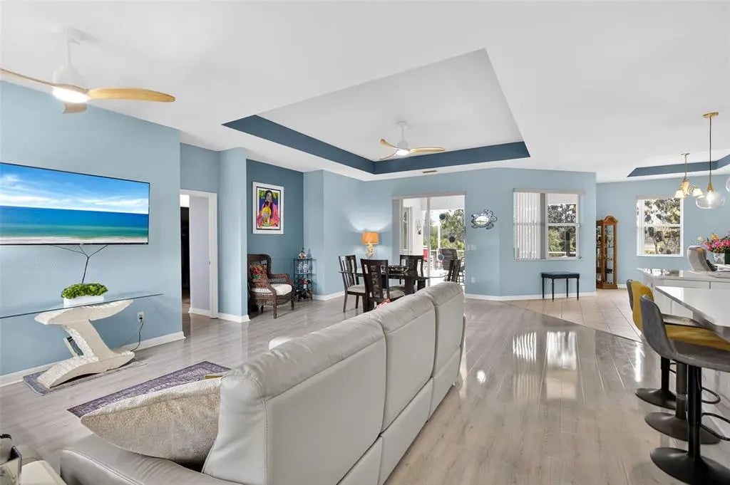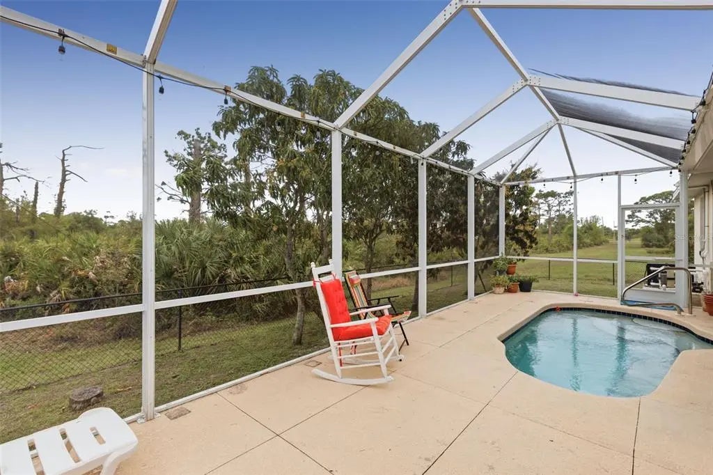 Discover the perfect Florida retreat in this beautifully maintained 3-bedroom, 2-bathroom pool home, located on a peaceful dead-end street in the desirable Rotunda Sands community. Boasting 2,063 sq. ft. of living space, this residence features an open-concept floor plan with high ceilings and an abundance of natural light. The open concept living area flows seamlessly from the kitchen, complete with a center island, into the living and dining areas—ideal for entertaining. The kitchen has plenty of storage, stainless steel appliances, quartz countertops and a separate counter for casual dining. Sliders lead out the screened lanai seating area with a heated pool, certainly an oasis for relaxation or gathering with guests. Enjoy the fenced in backyard with mature landscaping and fruit trees for your pets and outdoor activities. The home’s split floor plan allows your guests privacy while you retreat to your spacious Primary bedroom. The ensuite features dual sinks, a walk-in shower, soaking tub and two walk-in closets. Plus private access to the screened-in pool patio through the slider doors. Peace of mind with a new roof (2022), Hurricane shutters, AC (2022), Pool cage (2019), pool solar panels( 2018), and located in an X flood Zone. Areas of interest close by include Boca Grande, Beaches of Manasota Key, world class fishing, water sports, Cape Haze Pioneer Trail, dining and shopping with so much more to explore. This home offers the ultimate Southwest Florida lifestyle with an incredibly low HOA and a quiet neighborhood.