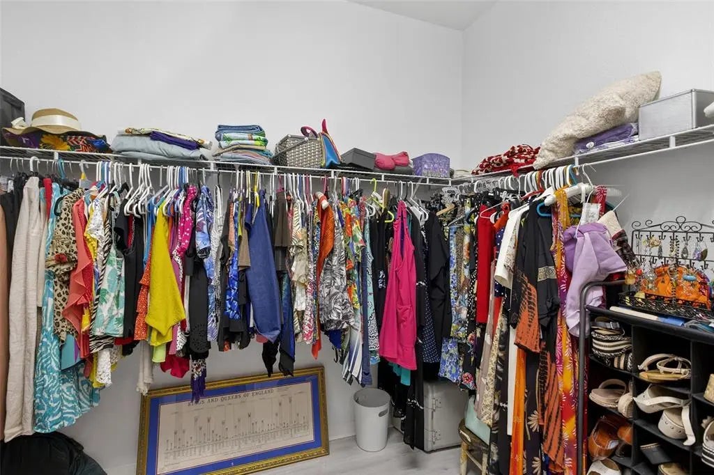 - Interior FeaturesCeiling Fan(s), Coffered Ceiling(s), Eating Space In Kitchen, High Ceilings, Living Room/Dining Room Combo, Primary Bedroom Main Floor, Solid Surface Counters, Split Bedroom, Stone Counters, Thermostat, Walk-In Closet(s), Window Treatments