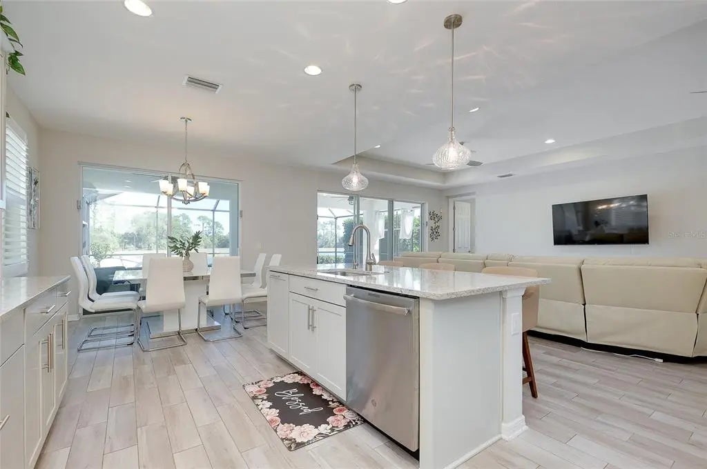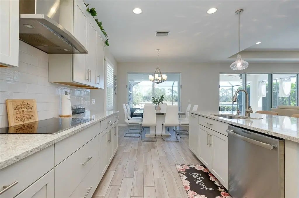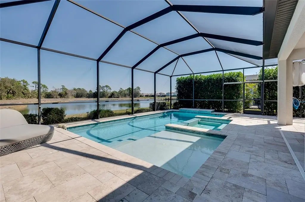 Welcome to your private slice of paradise, nestled in the intimate, gated community of Oasis at Wellen Park in beautiful Venice. If you’re looking for a beautiful, move-in ready home with an amazing, private view of the water and nature preserve beyond, look no further. This exceptional 4-bedroom, 3-bath residence with a 3-car garage offers quality craftsmanship, thoughtful design, and over $100,000 in upgrades, all perfectly positioned to embrace the Florida lifestyle. Built by M/I Homes, this quality-constructed home includes a transferable structural limited warranty, is located in FEMA X Flood Zone (no flood insurance required), and experienced no damage from Hurricane Ian — offering both peace of mind and lasting value. Inside, the great room concept with soaring high ceilings creates an open, airy ambiance. Two sets of sliding glass doors span the back of the home, showcasing breathtaking lake and preserve views while seamlessly connecting indoor and outdoor living. Neutral porcelain tile flooring and Hunter Douglas plantation shutters run throughout, complemented by custom lighting and ceiling fans for added elegance and comfort. The gourmet kitchen is truly the heart of the home — featuring a large center island, quartz countertops, top-of-the-line GE stainless steel appliances, a 5-burner cooktop, and double convection ovens. Whether hosting gatherings or enjoying a quiet evening in, this space was designed to bring everyone together. A whole-house water softener and reverse osmosis system provide crisp, delicious drinking water Step outside and envision your everyday escape. The stunning travertine deck surrounds a custom saltwater pool with programmable lighting, a waterfall feature, sun shelf, and a dramatic 6-jet infinity-edge spa. Landscape lighting sets the perfect evening ambiance across the oversized lanai, ideal for entertaining or simply relaxing while soaking in the tranquil water and nature preserve views. The spacious owner’s suite is a serene retreat with pool and lake views, a convenient valet area for morning coffee or tea, and a large walk-in closet featuring a John Louis closet system. French doors open to the spa-inspired owner’s bath complete with an oversized walk-in shower, double vanity, and expansive mirror. The thoughtfully designed split floor plan ensures privacy for owners and guests alike. One of the three guest bedrooms is currently styled as a game room, complete with a bar-height marble counter and floating wood shelf a perfect flex space to suit your needs. Additional upgrades include complete surge protection and a Ring security system with motion detectors and cameras, giving you confidence whether you’re home or out enjoying all that the area has to offer. Living in Oasis means maintenance-free convenience and access to resort-style amenities including a clubhouse, fitness center, resort pool, tennis and pickleball courts, and scenic walking paths. Just minutes away, enjoy the energy of Downtown Wellen Park, catch spring training at the CoolToday Park (home of the Atlanta Braves spring training), explore Grand Lake, visit Blue Heron Dog Park, or spend the day at nearby Manasota Key Beach. Imagine morning walks by the lake, afternoons floating in your pool, evenings dining under glowing lanai lights, and weekends filled with beach days and community events. This is more than a home, it’s a lifestyle defined by sunshine, connection, and effortless coastal elegance. We will see you soon!
