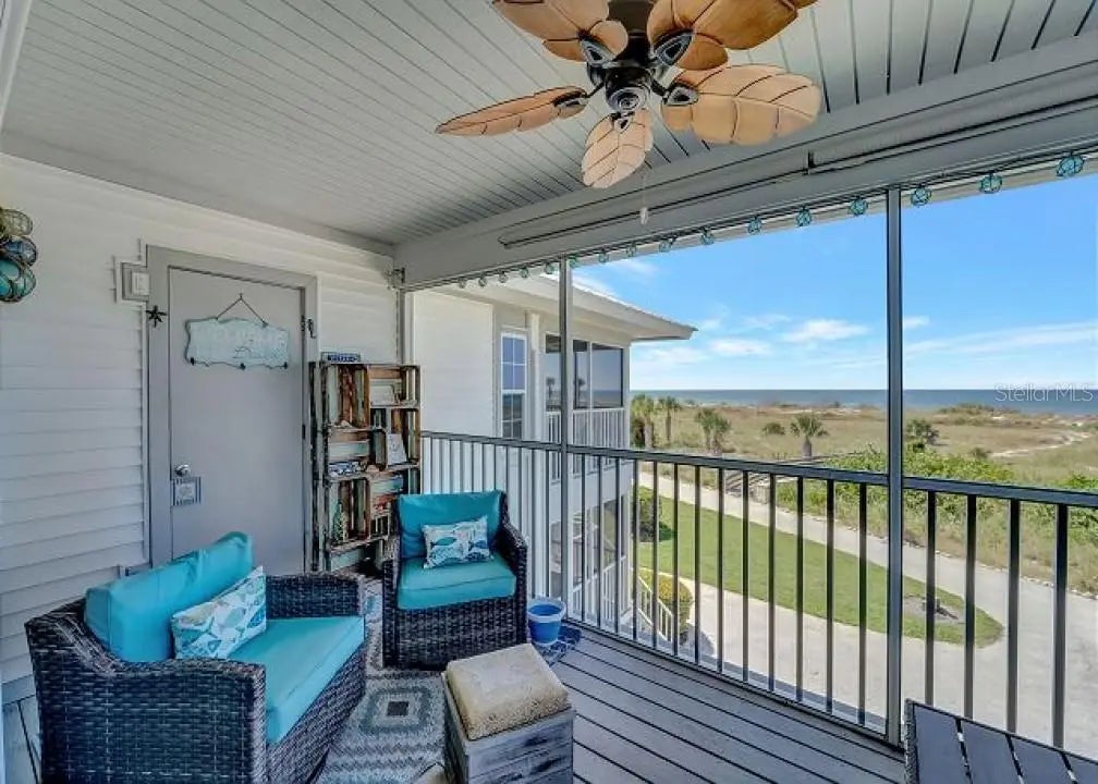 SIGNIFICANT PRICE IMPROVEMENT on this unique property! Stunning views from this Palm Island Resort Beach Villas condo. TOP FLOOR UNIT with vaulted ceilings, perfect layout and coastal touches. Completely updated unit being sold furnished. 7 miles of pristine beach and the clear waters of the Gulf are out your back door. This well maintained unit boasts PVC wood-look flooring, designed for coastal living, plantation shutters on all windows, Hunter Douglas blinds on doors, a beautifully designed kitchen with a leather finished granite and views galore. You can feel the sea breeze and hear the waves come along shore as you relax on the screened lanai which offers privacy shades, storage and UNOBSTRUCTED views that are some of the best on the island. Palm Island Resort offers endless amenities including, bell service, security, Rum Bay Restaurant, a clubhouse, dockage, tennis courts, ice cream shop, gift shop, bike, golf cart, kayak rentals and so much more. Islanders in the resort get to and from via golf cart or bicycle keeping in tune with the laid back coastal living which makes the island so unique and special. Excellent rental history with the Resort Services Program. Getaway to your island retreat and leave your worries on the mainland! Seller very motivated!