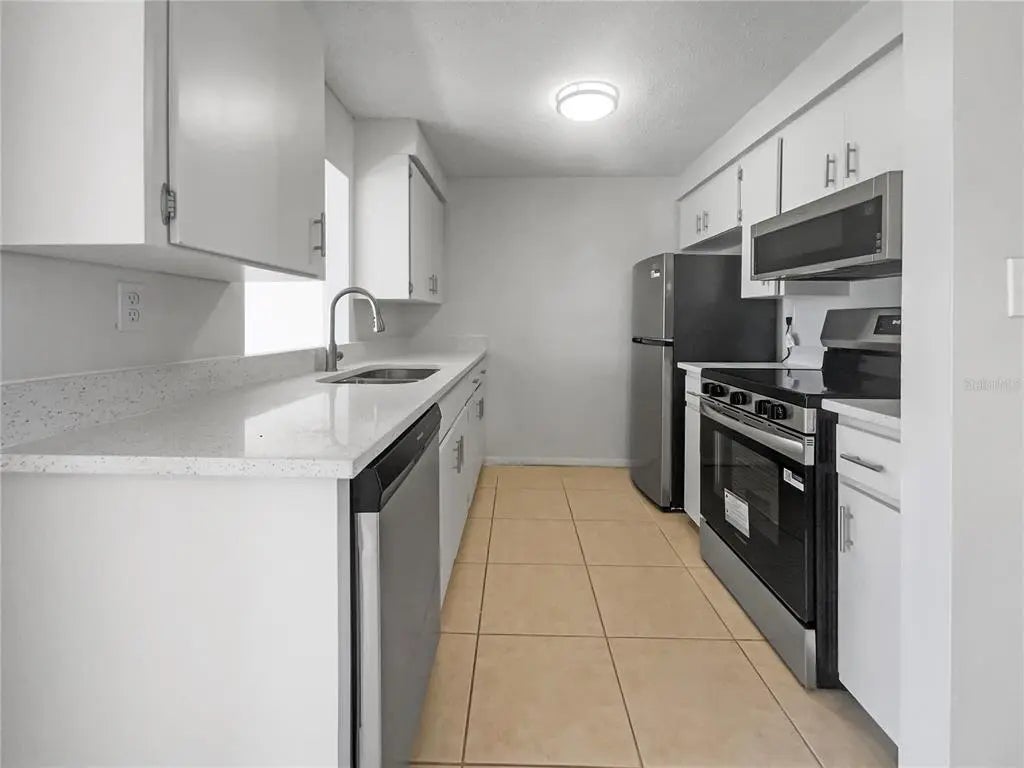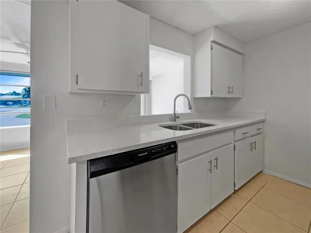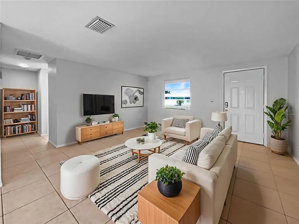 One or more photo(s) has been virtually staged. 100-Day Home Warranty coverage available at closing.Coastal-cool and move-in ready in Venice’s 34293. This cheerful concrete-block ranch greets you with a fresh white exterior, a covered carport with storage room, and simple, low-maintenance landscaping. Inside, the sunlit living room opens to a crisp, renovated galley kitchen featuring solid-surface countertops, clean white cabinetry, and stainless-steel appliances—including a dishwasher, microwave, range, and refrigerator. Neutral tile flooring flows throughout for easy care and a seamless look. Flexible rooms offer space for dining, work, or guests, and the level backyard is a blank canvas for a patio, garden, or play area. Practical perks include covered parking, abundant windows, and a bright, neutral palette ready for your personal touch. All of this in a convenient south Venice location close to everyday shopping and dining along Tamiami Trail, Wellen Park, parks and trails, golf, and a short drive to Gulf beaches and historic downtown.