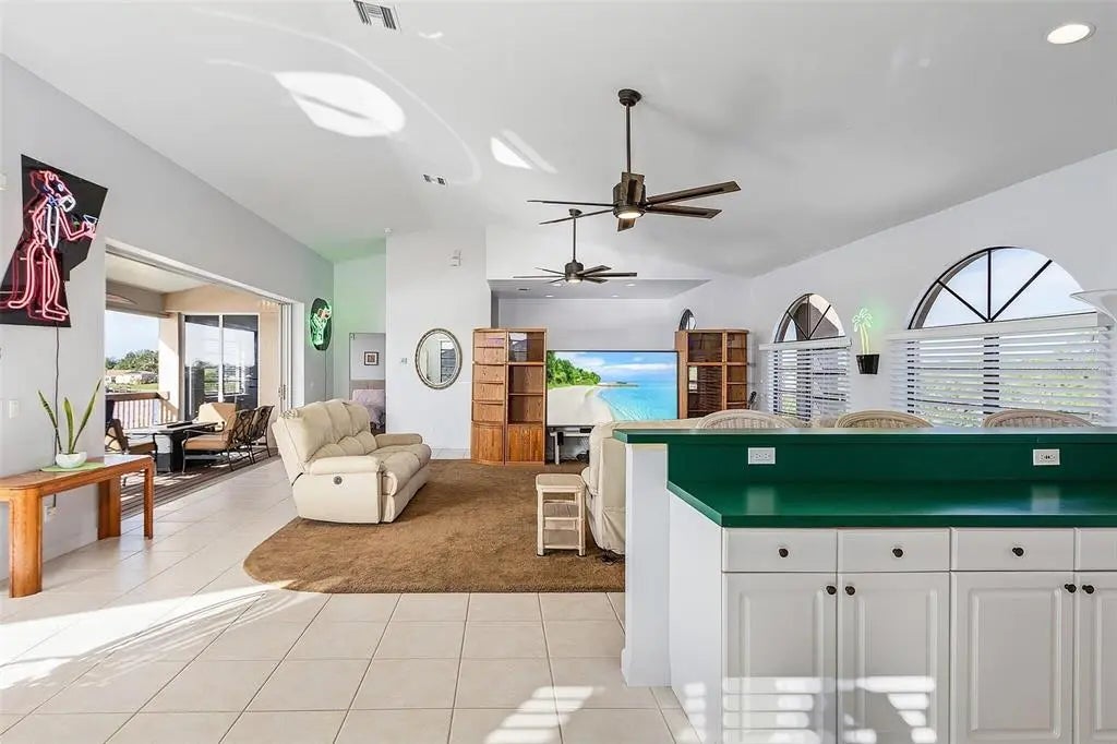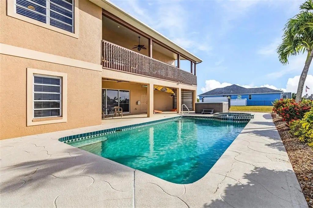 This CUSTOM RESORT STYLE HOME, has spectacle views and is user-friendly all year round inside and out. The upper level ENORMOUS windows provide you with 360° views insuring your views will never be blocked in the future. (No ranch style small windows here!) The vantage point on the second story will provide a unique outlook on life to the point as soon as you wake up you’ll be smiling knowing no matter where you are in the home you'll have some nice scenery out your windows. The 8 person octagon spa flows over into your real size 14’x28’ pool suitable for laps. Then after your workout just relax in the SIMPLY AMAZING 115 jet therapeutic luxury spa . In your backyard is an extra EXTRA wide intersecting waterway that has 88 feet of seawall assuring room to park your boat or have your own fishing spot. Leave in your boat and go east or west on your way to the Gulf of Mexico and you won't have to come back the same way. (Sorry no skinny dead end garbage collecting smelly water here) !!!!!!!! The depth of the water is controlled by a lock So the depth remains constant, allowing you to get your boat in and out at anytime !!!!!!! The yard has room for parking a trailer, rv or even a volleyball court. Ginormous? Heck YA,,,,Open up your 33 feet of pocketing sliders to give you an OPEN concept 1730 sq ft upper level. This unique style home allows for separate living areas if so desired. Live upstairs and rent downstairs or possibly an Airbnb or snowbird rental. The lower level scullery is ready for a kitchenette in case you desire separate living spaces. No Florida home is complete without the VERY MOST IMPORTANT FEATURE southern exposure!! You will be assured a user-friendly exterior environment whether in the penthouse or on the lower level. Outdoor activities are possible all year round and you will not be trapped inside behind your shades all day long. The upper outdoor area/ office provides a unique perspective on life while watching the boats navigate through the waters. (No wasted space walls here!!) The year round user-friendly southern exposure second level outdoor living area provides cool breezes in the summer and warmth in the winter. There are 55 miles of canals in your neighborhood just steps out your back door to explore in your kayak. Your choice, You may find yourself coming to Florida to explore but you may soon realize that your home has everything and you really don’t need to go anywhere else. This custom style home is for those few individuals that can appreciate the finer things in life and take their own path. All updates now Included.
