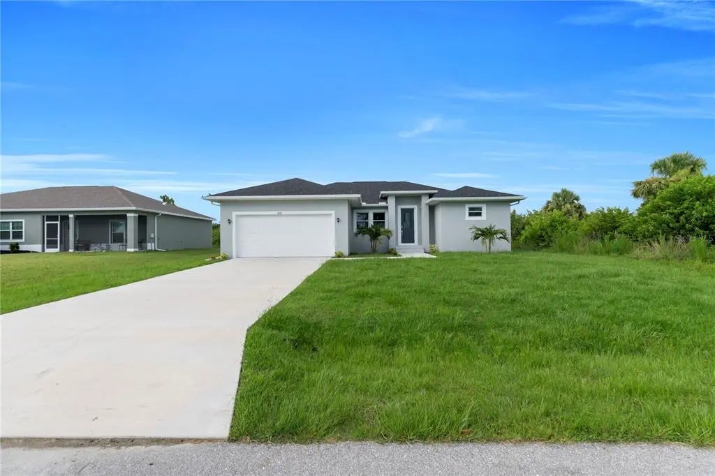 Under contract-accepting backup offers. PRICED TO SELL! Price DROP!! NEW CONSTRUCTION! Ask me how you can make custom changes to this home. This freshly built single-story home features an open layout where the living, dining, and kitchen areas flow seamlessly—perfect for everyday living and entertaining. Located in the heart of South Gulf Cove, the best part is no HOA! The kitchen boasts brand-new appliances, granite countertops, and plenty of cabinet space, plus a convenient laundry room. The primary bedroom offers a private bath with dual sinks and a walk-in closet, while two additional bedrooms, each with walk-in closets, share a full bath. Enjoy outdoor living on the spacious lanai and extra privacy with no side neighbor on one side. With a new roof, HVAC, electrical, plumbing, and appliances, this home is truly move-in ready. Other perks include public water and sewer and a prime location—less than 2 miles to Charlotte Harbor Yacht Club, near Publix, Walmart, and under 3 miles from shopping plazas and retail stores.