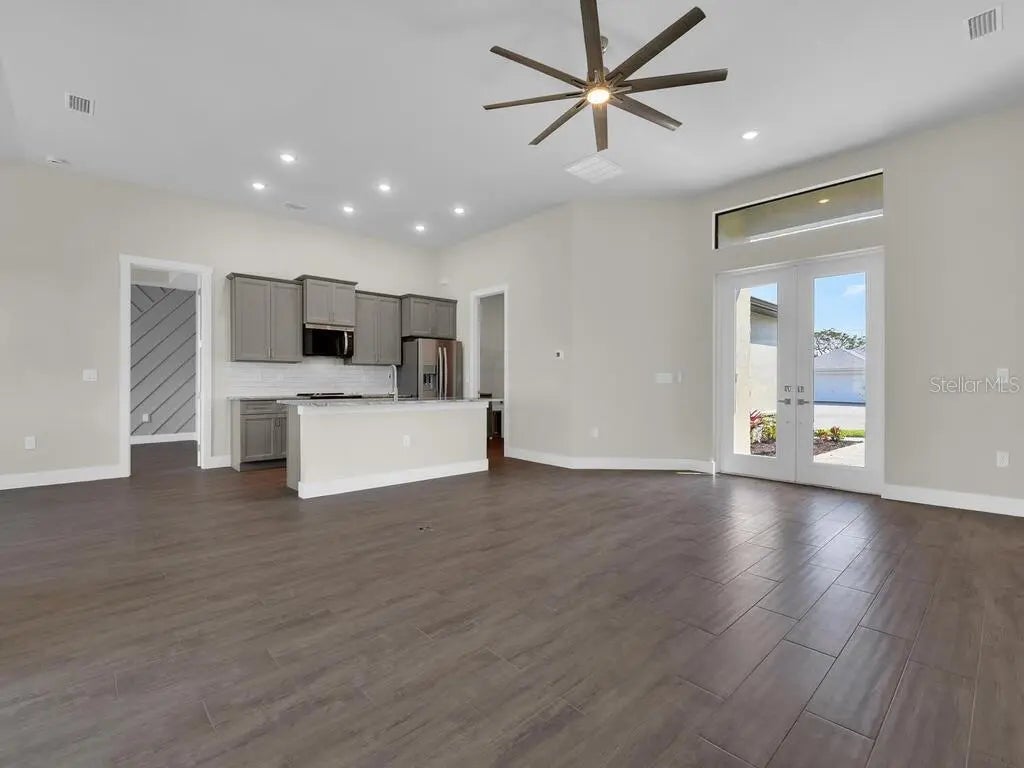 Discover the brand-new Custom Douglas Brooke Home featuring 4 bedrooms, 2 bathrooms, and a 3-car garage, complete with impact-resistant windows and doors. Spanning over 2000 square feet, this home is adorned with high-end finishes. Step through the impact-resistant glass double doors and into a spacious great room showcasing elegant dark wood-look tile, soaring ceilings, and sliding doors that lead to an expansive pool area. The kitchen boasts crisp white upper cabinets and black base cabinets, quartz countertops, and stainless-steel appliances. A large island separates the kitchen from the living space. Adjacent to the kitchen is a huge walk-in pantry and a sizable laundry room with a sink. The dining area, set behind the kitchen, features a vaulted ceiling. The master suite is a true retreat with walk-in closets and an ensuite bathroom with dual vanities and a walk-in glass shower. The home's guest wing offers three additional large bedrooms and a full bathroom. Completing this residence is a generous 3-car garage and a pool equipped with an alarm system. Additional features include in-wall pest control, pre-wiring for cable in the master and living rooms, smart home capabilities, and impact-rated windows and doors. Close to shopping, nightlife, boat ramps, hospitals, major airports and so much more! 3D video is of Model Home with same floorplan and finishings may differ. Please see attachments. Rates as low as 3.99% for well qualified buyers with DBL Home Mortgage.
