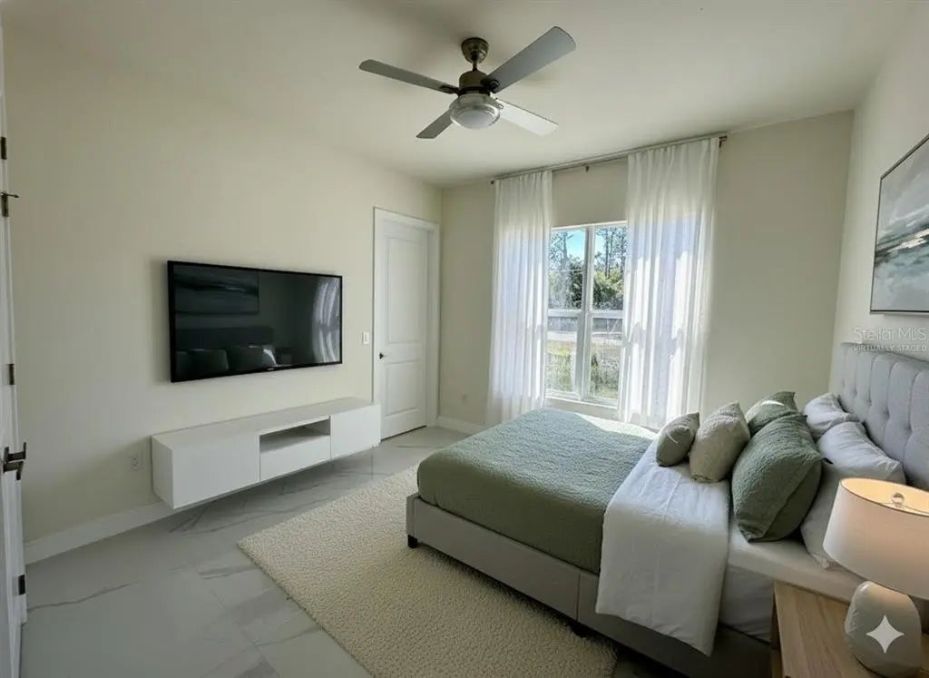 One or more photo(s) has been virtually staged. The Giovanna model is an outstanding example of modern architecture in the heart of Florida. With four spacious bedrooms and three elegant bathrooms, this home offers a comfortable and functional space for the entire family. The kitchen and laundry room are designed with a focus on efficiency and convenience, using high-quality materials to ensure durability and style. The garage offers space for two vehicles, while the backyard is an oasis of tranquility, perfect for family gatherings or simply relaxing outdoors. The architecture of this home is distinguished by its clever use of simple yet elegant materials and geometric forms. High-quality building materials combine with basic geometric shapes to create a modern aesthetic. Large windows and sliding glass doors allow natural light to flood the interior spaces, creating a sense of spaciousness and seamlessly connecting the interior with the beautiful backyard. The bedrooms are designed to provide comfort and tranquility. Each bedroom offers enough space to rest and relax, with a design that cleverly incorporates storage to keep all your belongings organized. In short, the Giovanna model is a perfect combination of modern style, functionality, and comfort, ideal for those looking for a home that reflects their active, contemporary lifestyle.