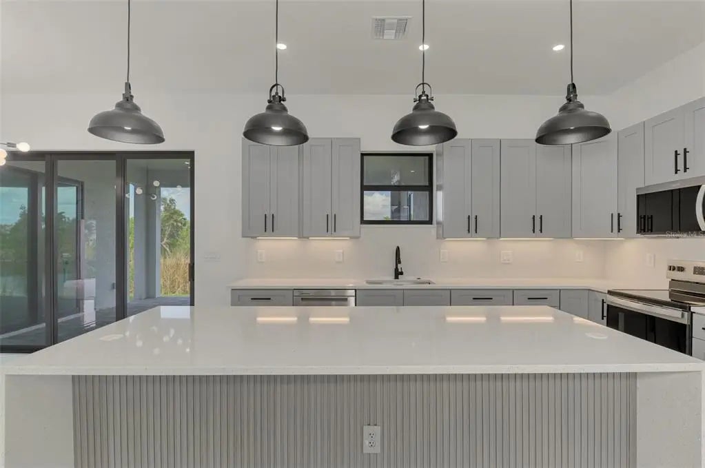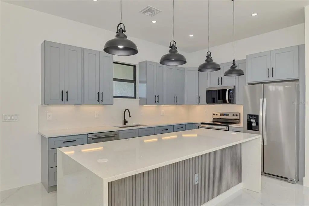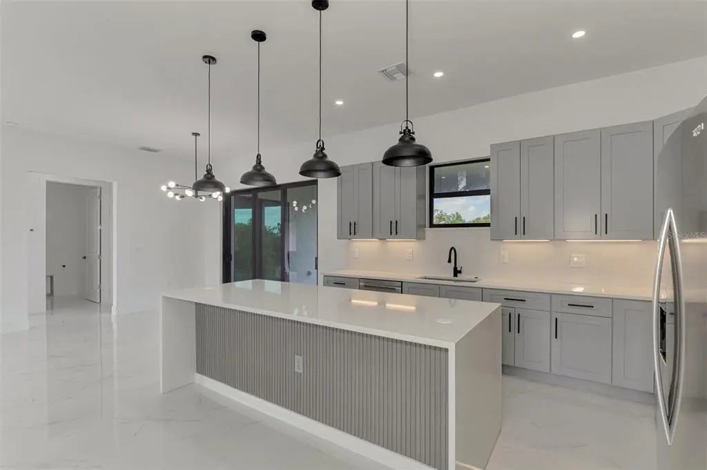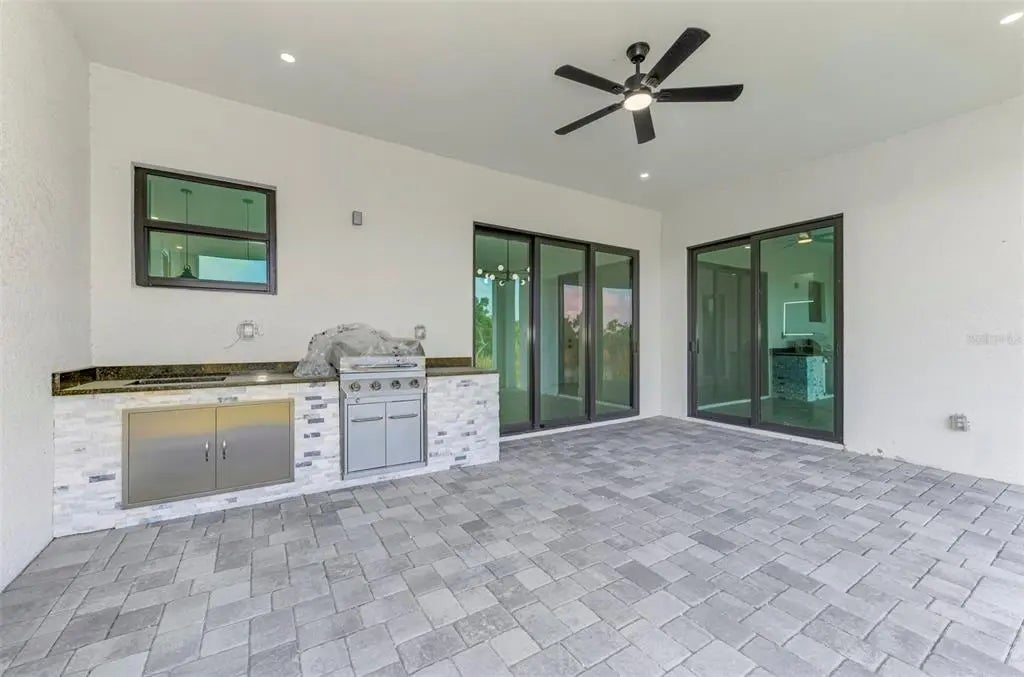 Stunning newly built 4-bedroom, 3-bathroom home (2025) offering a perfect blend of modern design and superior craftsmanship. This residence features a spacious open-concept layout seamlessly connecting the living area and gourmet kitchen, ideal for both everyday living and entertaining. Showcasing high-end finishes throughout, the home includes elegant porcelain tile flooring, soaring 10-foot ceilings, and impressive 9-foot doors, creating a bright and expansive feel. Every detail has been thoughtfully selected to deliver a level of quality and sophistication that truly stands out from other homes in the community. Enjoy outdoor living at its finest with a fully equipped summer kitchen, perfect for entertaining while overlooking the canal. Situated on a canal-front lot with direct access to open waters, this property offers a unique opportunity for boating enthusiasts, with convenient access to the beautiful Charlotte Harbor. With approximately 2,782 sqft of total area and 1,991 sqft under air, this home combines luxury, comfort, and functionality in one exceptional property. This is not just a home — it is a statement of quality, comfort, and elevated living.