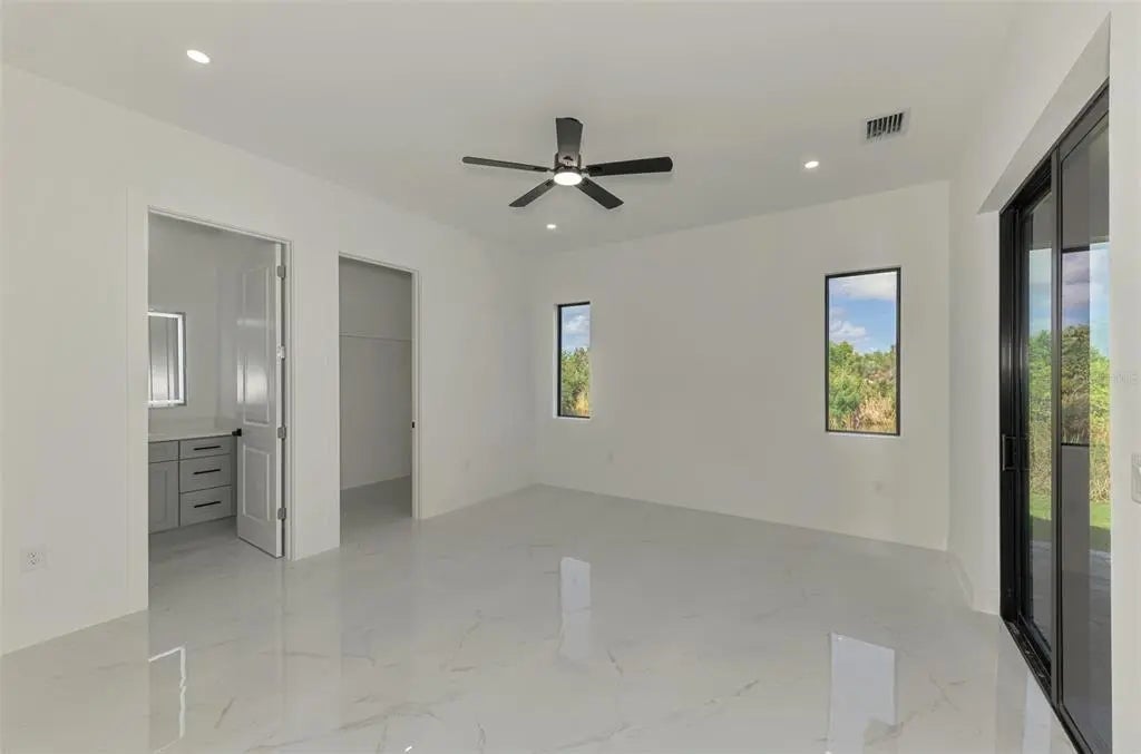 - Interior FeaturesCeiling Fan(s), High Ceilings, Living Room/Dining Room Combo, Open Floorplan, Walk-In Closet(s), Window Treatments