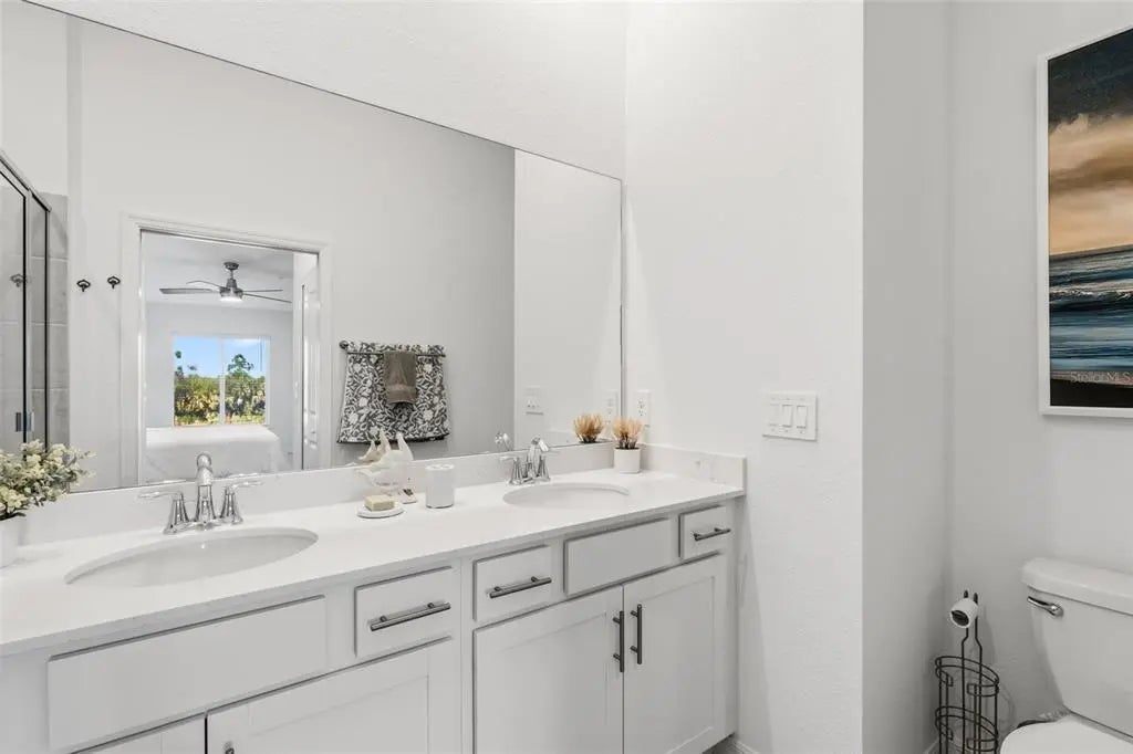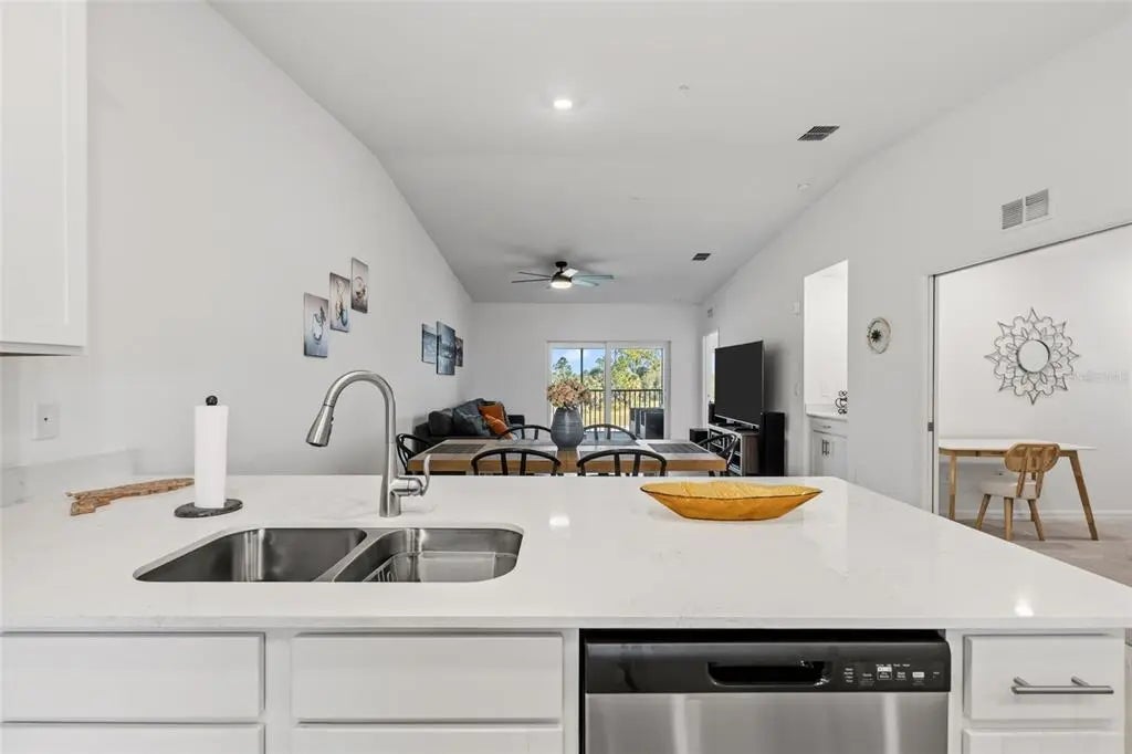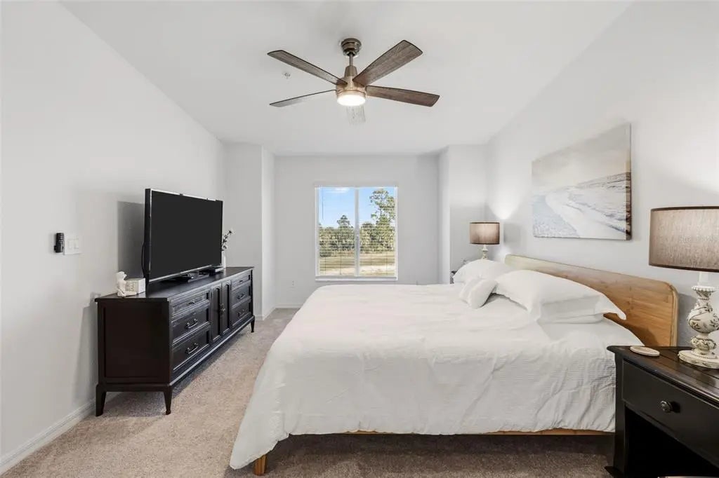 A rare opportunity is now available with this condo that includes two deeded golf memberships, an option the builder has officially discontinued. Set within Wellen Park Golf and Country Club, this gated neighborhood offers a lively, resort inspired lifestyle in one of the nation’s fastest growing master planned areas. Positioned on the second floor, the home features high vaulted ceilings, two bedrooms, a flexible den that works beautifully as an office or guest room, and a layout designed for comfort and flow. The primary suite is spacious and features custom built closets along with a private bathroom that includes dual sinks and a tiled walk in shower. A separate guest bedroom and full bath provide additional privacy. The main living areas open seamlessly to each other, allowing the living room, dining space, and kitchen to enjoy wide, uninterrupted views of the community’s lush fairway. The kitchen feels airy and modern with its clean cabinetry, quartz island, and open layout ideal for cooking or gathering. Outdoor living is maximized with TWO screened lanais, one at the front and one at the rear, each offering a peaceful place to enjoy the Florida breeze. A one car garage adds convenience for parking, storage, or housing a golf cart. Just a short stroll from the building, residents have access to two satellite pools equipped with plentiful seating, a shaded cabana, and nearby restrooms. The community’s amenities elevate everyday living, featuring an eighteen hole course designed by Gordon Lewis, a pro shop, aqua driving range, bocce courts, a large resort style pool and spa, pickleball and tennis courts, a fitness center with an aerobics studio, a firepit lounge, a full service day spa, and a dedicated dog park. The community Tiki Bar is a popular spot for food, drinks, socializing, and catching the game. A new clubhouse is on the way and will introduce upscale dining and curated social events led by a full time lifestyle director. The location offers quick access to the area’s best attractions, including multiple Gulf beaches, the Historic Venice District, and Downtown Wellen with its live music, lakeside boardwalks, restaurants, and shopping. This property is ideal for full time living, a seasonal retreat, or a strong investment rental.