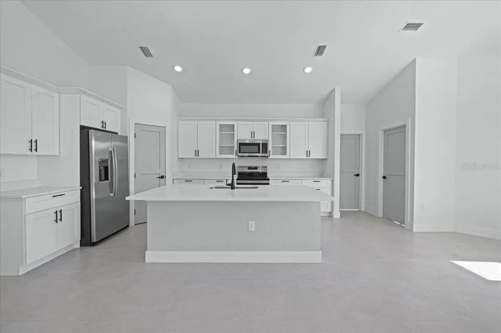 - Interior FeaturesEating Space In Kitchen, High Ceilings, Open Floorplan, Stone Counters, Thermostat, Walk-In Closet(s)