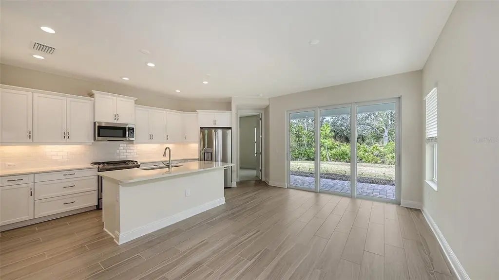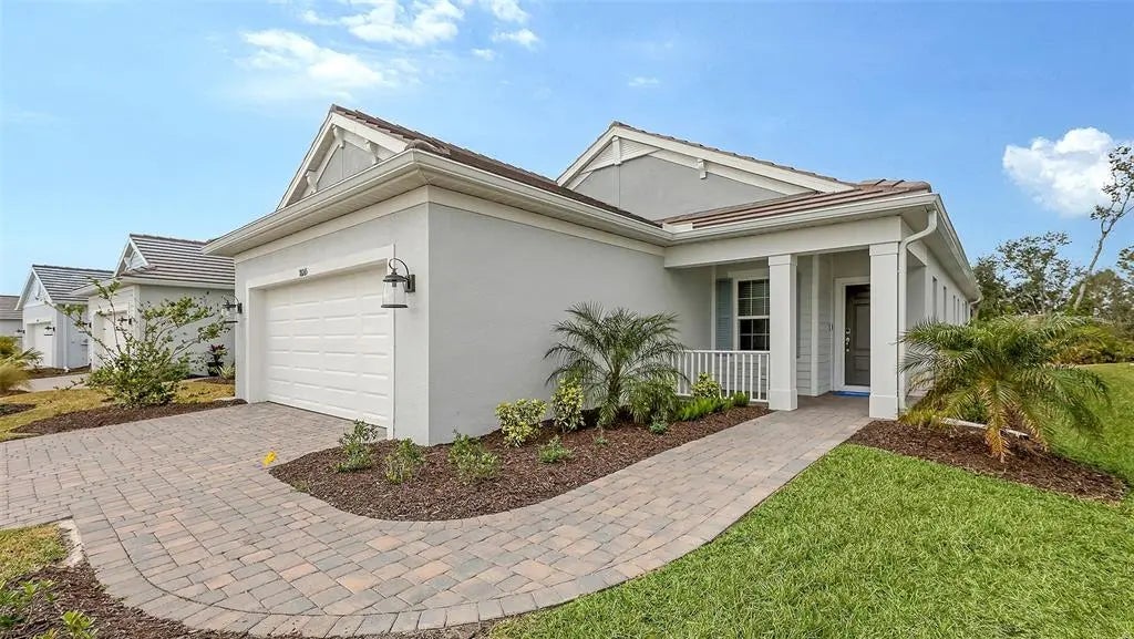 The Patriot, by Neal Communities, is a very popular floor plan now available at Wysteria in Wellen Park. This particular home design features a welcoming front porch. Inside, you step into a grand foyer that leads to the open great room along side a large kitchen. This highly sought after kitchen has a big island, soft close cabinets, pot/pan drawers along with plenty of counter & cabinet space! This home has gorgeous Level 5 Wood-look tile floors and 8' interior doors! This new home also has Impact Resistant Glass. This particular home is currently being built with a 2 ft garage extension, utility sink in the garage, as well as on a conservation homesite!