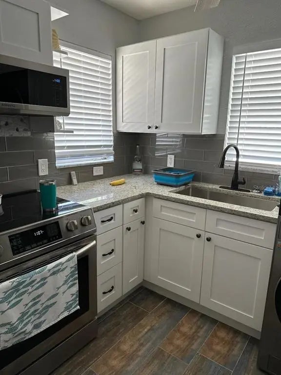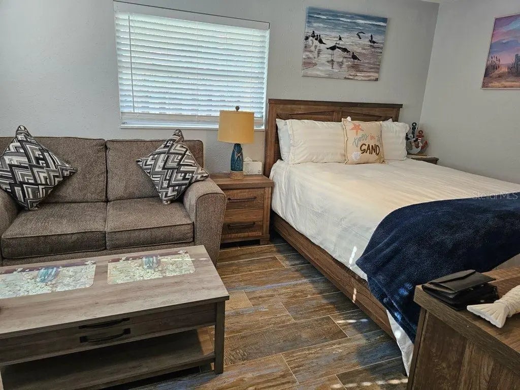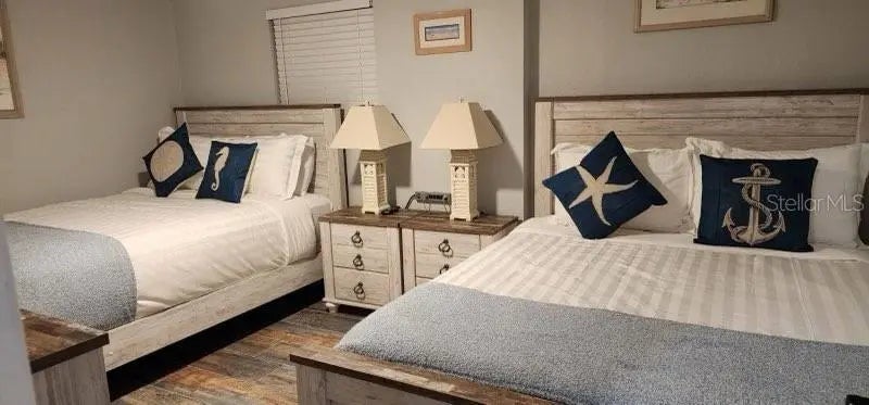 Don’t miss this charming beach condo with a single story entrance. It can be used as a primary home, with a mother daughter suite that has a separate entrance, or an Airbnb with a suite for the owner. Units 9E and 9W. Each unit has a full kitchen, living, bedroom, and full bath. The primary residence has a large open floor plan with two bedrooms—one accommodating a king-size bed, the other with two queen-size beds. There are 2 leather couches, one is a new leather pull out sleeper couch with an extra thick mattress pad that allows for two additional persons to spend the night. All appliances in both units are stainless steel and were put in new less than 2 years old. There is ceramic tile flooring with a blue swirl throughout both units. The second unit is a one-bedroom unit with a queen bed and loveseat in the living/bedroom area, full kitchen, and bathroom. Separated by a hotel-like door but can be combined with the primary unit. The flexible layouts Can be used as a single primary home or divided into two separate units with their own entrances. They are separated by a hotel-like door between them to extend the primary unit if desired, or keep them separate. Each unit has its own external door access. The unit is set up for a turnkey operation if you want to rent it out for short term stays. The 2 bedroom unit is already listed on AirBnB and has many good reviews. Primary unit sleeps (8), secondary sleeps (2). The home is located in the middle of the Spinnaker Bay condo complex. The condo complex has a covered day-dock for fishing, boating or simply reading a good book. Pets allowed with no restrictions from the Condo Association. The primary beach access is located 1.5 miles down the road. There are many local restaurants to choose from and water activities such as parasailing, boat rentals, dinner cruises and more. The beach is directly across the street and the bay inlet is behind the unit.