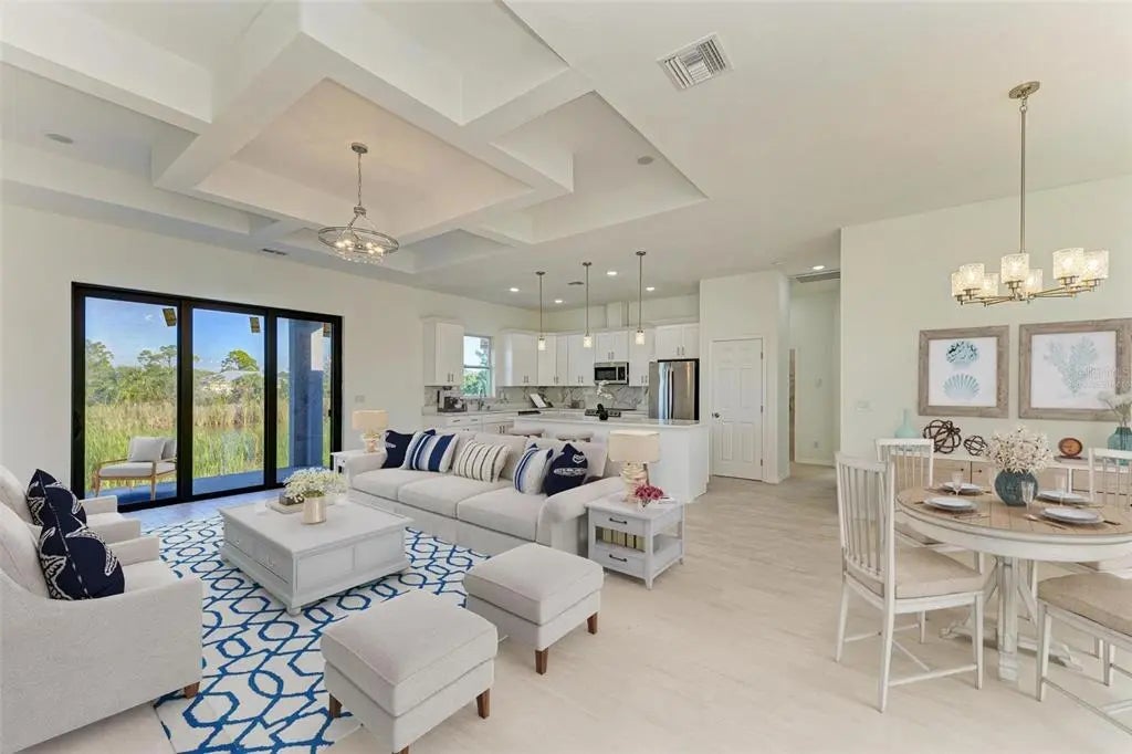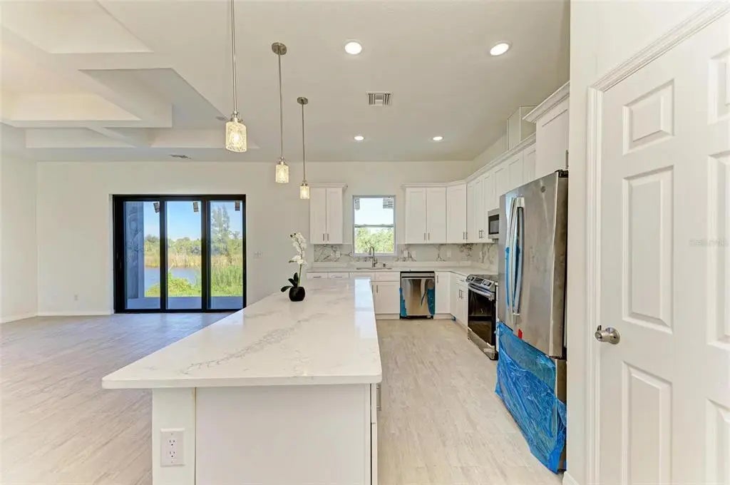 One or more photo(s) has been virtually staged. WOW YOUR STUNNING CUSTOM BUILT BRAND NEW 2025 LUXURY WATERFRONT GULF ACCESS HOME ALMOST 3,000SF TOTAL AREA IS HERE FOR YOU TO ENJOY YOUR FLORIDA LIFESTYLE! PLACED IN THE HEART OF SOUTH GULF COVE WITH CITY WATER AND CITY SEWER! SPACIOUS OPEN FLOOR PLAN WITH THREE BEDROOMS and BEAUTIFUL wood-plank TILES THROUGHOUT INCLUDING ALL BEDROOMS! As you walk through the Upgraded Main Entrance with Extended Drivwway, you will realize that you are HOME! Spacious Master Suite features High Tray Ceilings with His & Hers Large Walk-in Closets and All Upgraded Master Bath with Tiled Shower, Beautiful Granite Countertops and Double Vanities! Magnificent Waterfront View from Nearly Every Room with Large Sliding Doors taking you to the Outdoor Living to enjoy your Florida Living! Tall 10ft Tray Ceilings and 8ft Doors Throughout! Enormous Screened Outdoor Area for You to Entertain your Family and Friends! ALL UPGRADED AMAZING Lighting System is Modern and Stylish throughout this Amazing Home with ceiling fans, bar lighting! The Kitchen is a Masterpiece of its own including Beautiful Granite with Tall Kitchen Cabinets and Stainless Steel Appliances! Large Laundry Room! Oversized Two Car Garage for All Your Toys! Fiber Optic Internet Connected with 1 GIG High Speed Internet Option! Beautiful view and fishing in the backyard! NO CDD, No HOA and no Rental Restrictions! LOCATION, LOCATION, LOCATION! South Gulf Cove has 55 miles of Canals for you to enjoy! The public boat ramp, pavilion and park is only 10 minutes away. Close to Beautiful Gulf beaches like Boca Grande. Multiple golf courses are in the area! Local restaurants and Marinas are just around the corner. Shopping Centers and Amazing Restaurants within miles, Don't Miss this Beautiful Home. Schedule your Private Showing Today and ENJOY YOUR PIECE OF PARADISE !