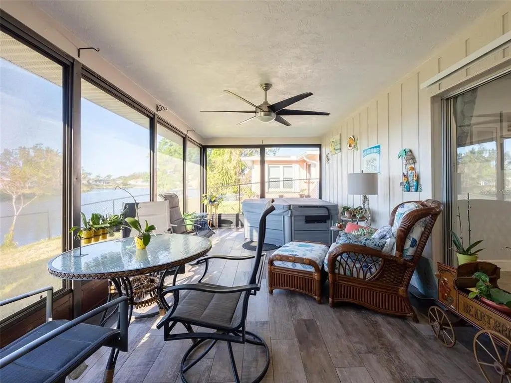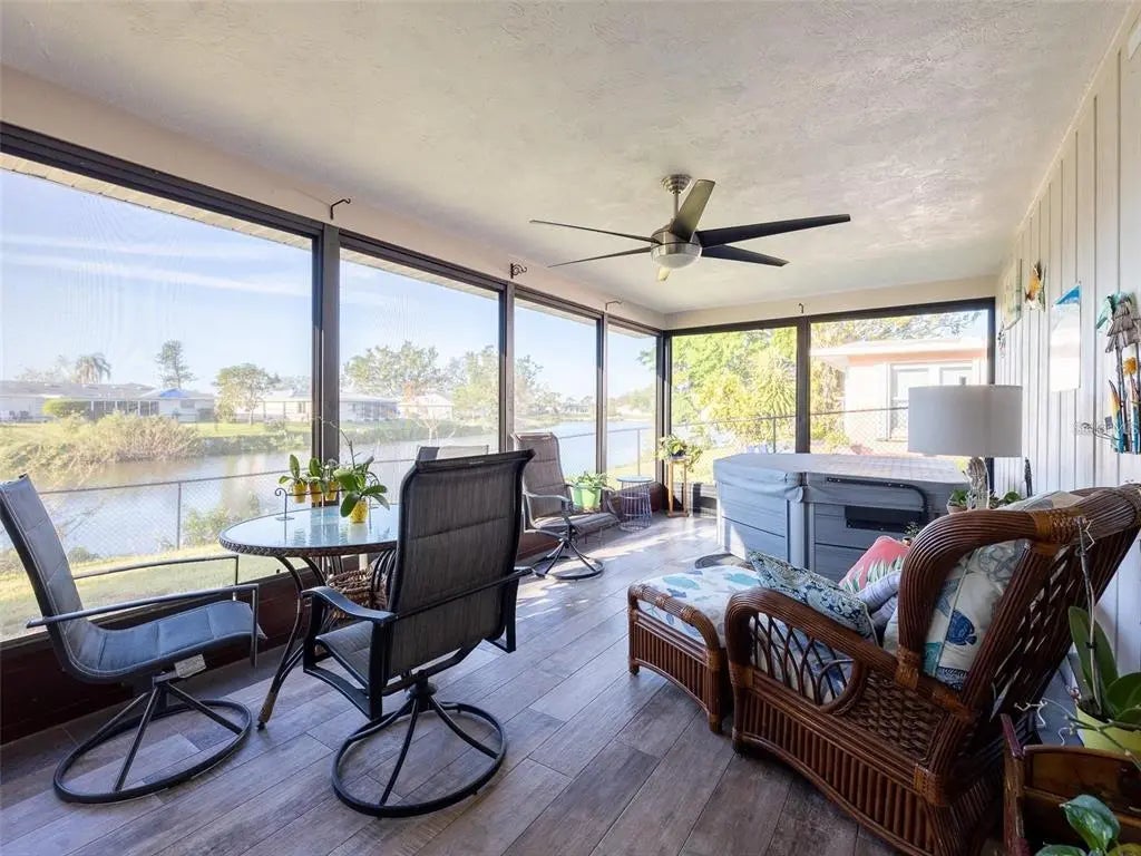 Under contract-accepting backup offers. This one is a showstopper! Beautiful lakefront views from this light & bright solid concrete block construction home with no flood insurance required! This 1700 sqft, 2-bedroom 2-bathroom split floorplan home has too many upgrades to list them all. Starting from the moment you enter you will see how this home was cared for with no expense spared. A gorgeously updated eat-in kitchen with solid wood cabinets, stone countertops and all new appliances. Both bathrooms have been tastefully updated alongside large bedrooms with walk-in closets. This home is ready for entertaining, with a formal living room and formal dining, in addition to a family room open to that stunning kitchen and access to the enclosed lanai overlooking the lake. Not to mention the massive laundry room off your 2-car garage; this home has storage for days. A few special features for the new homeowner include a newer generator installed, power for a camper on the side of the home with the extended paved driveway and a new jacuzzi! Not only does this home offer loads of entertainment but is protected from any storm heading this way, a newer tile roof, all windows and doors are impact rated and the lanai windows are fitted for hurricane shutters. ABSOLUTELY ZERO DAMAGE FROM THE STORMS LAST YEAR/NO FLOODING OR WIND DAMAGE!! All you have to do is move in and enjoy the Florida lifestyle, located just south of Center Rd, minutes from our beautiful sandy beaches, shopping and dining and the local airport. Home being sold furnished as an option with the exception of a few items. MOTIVATED SELLER!