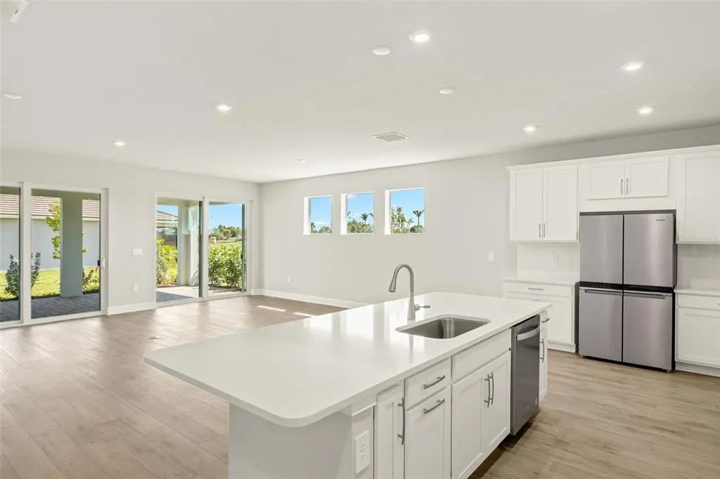 The Sage Coastal exterior is a single-family home with 2,193 sq. ft. has 2 bedrooms, a study and 2 and half baths. The welcoming foyer has convenient powder bath on the way to the open concept living area. This magnificent space is full of natural light, thanks to numerous windows and a 12-foot multi-sliding glass door leading to the covered lanai, which has been extended, and covered, which is perfect for enjoying the Florida lifestyle. The open space of the combined dining area and Great Room are perfect for relaxing or entertaining. The luxurious owner’s suite offers an expansive walk-in closet, linen closet and bath with a large shower, with bench seat. Bedroom two has its own private full bath, and linen closet. The garage has room for storage it comes with a garage door opener. This home has impact windows and doors, tile roof, and paver driveway. This Smart Home includes an Ecobee Smart Thermostat - Amazon Alexa compatible, Video Doorbell - with app, video recording and 2-way communication and ClareOne Touchscreen Panel! Wellen Park's only 55+ Community featuring future Amenity Center (21,000 sq ft) with 8 Pickle Ball Courts, 1 Stadium Court, 2 Pools (1 lap pool/1 resort style pool), State of the Art Fitness Facility, Bar and Cafe overlooking pools, dog park, Outdoor Exercise Lawn, Hot Tub, Full Time Lifestyle Director and so much more! Just minutes from beaches, Downtown Wellen Park, restaurants and shopping via golf cart/bikes or walking. Pricing, dimensions and features can change at any time without notice or obligation. Photos, renderings and plans are for illustrative purposes only and should never be relied upon and may vary from the actual home.