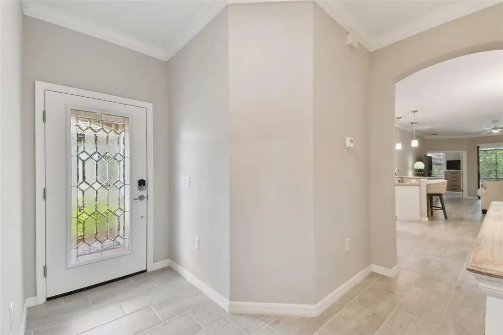 - Interior FeaturesCeiling Fan(s), Crown Molding, High Ceilings, In Wall Pest System, Living Room/Dining Room Combo, Open Floorplan, Primary Bedroom Main Floor, Smart Home, Solid Wood Cabinets, Split Bedroom, Stone Counters, Thermostat, Walk-In Closet(s), Window Treatments