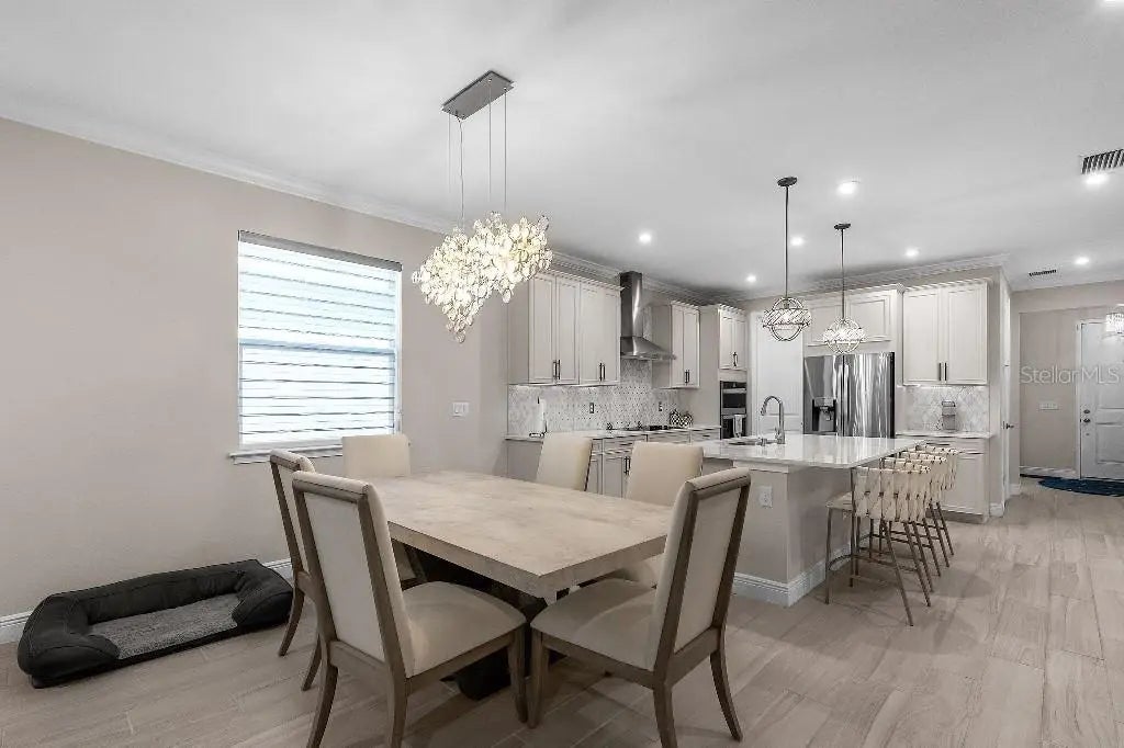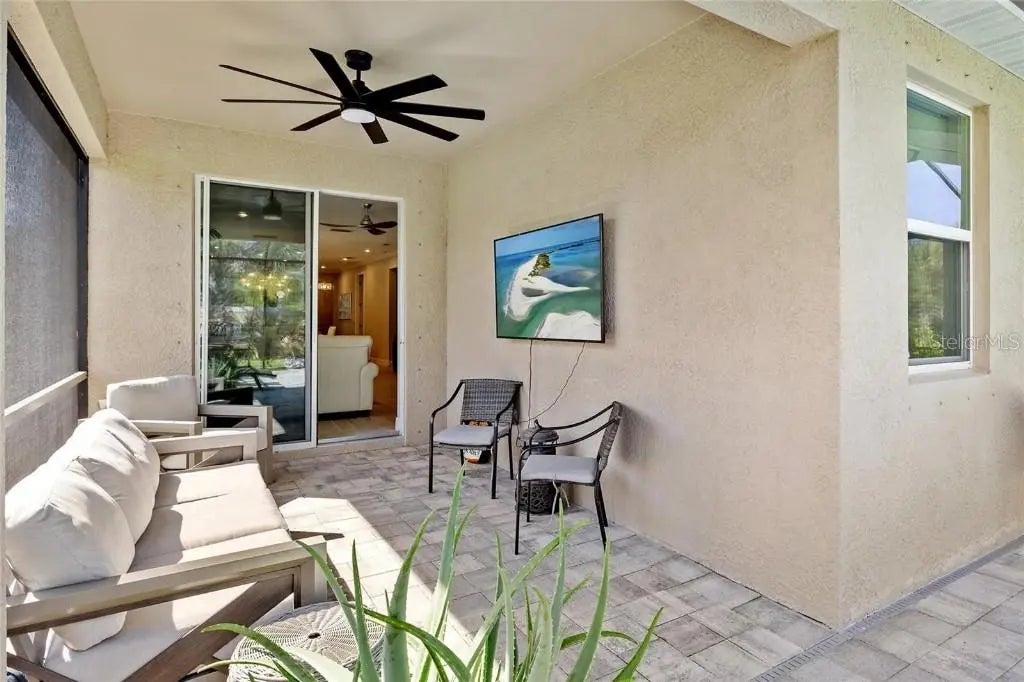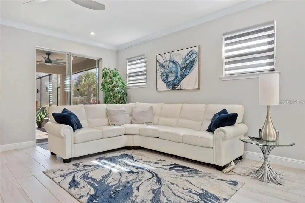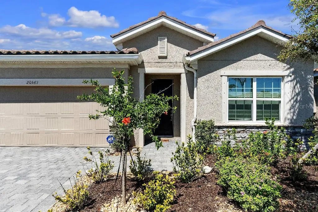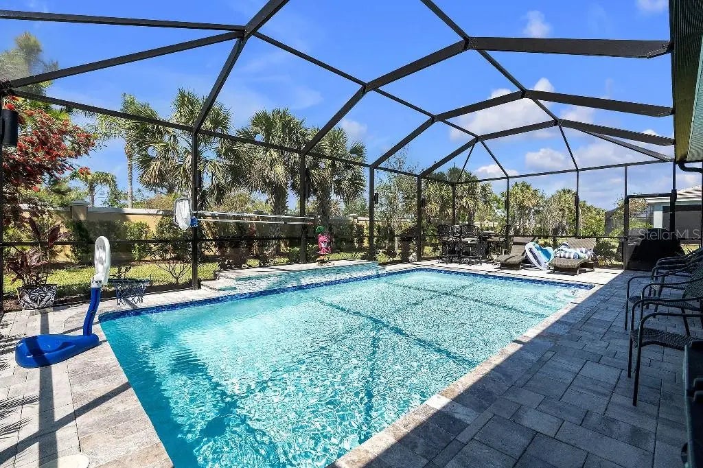 Welcome to this exquisite, nearly new pool home located in the sought-after Renaissance at West Villages community in Venice. This stylish and contemporary residence, built in 2022, features an impressive layout with 3 bedrooms, 2.5 bathrooms, a versatile flex room, and a spacious 2-car garage. Upon entering this remarkable home, you will be enchanted by its modern design and open floor plan, enhanced by elegant lighting and custom blinds. Spanning 2,373 square feet, the living space showcases porcelain tile flooring throughout the main areas, ensuring a seamless flow. At the heart of the home lies the upgraded gourmet kitchen, which boasts quartz countertops, a chic tile backsplash, a cooktop, stainless steel appliances including a built-in oven and microwave, and a generous center island with a breakfast bar. The living room, featuring a sliding door that opens to the lanai, is ideal for entertaining and enjoying tranquil views. The primary suite serves as a luxurious retreat, complete with a tray ceiling, a walk-in closet, and a private bath equipped with dual sinks and a walk-in shower. Additionally, the home includes a flex room and bonus spaces that can easily be converted into a den or office, tailored to your lifestyle needs. Step outside to the covered lanai and immerse yourself in the beauty of the screened, heated saltwater pool, adorned with waterfalls and surrounded by enchanting outdoor lighting and tropical landscaping. The southeastern views provide an abundance of Florida sunshine, creating an idyllic setting for relaxation and entertainment. For added peace of mind, storm panels are included for hurricane protection. The Renaissance at West Villages is a Tuscan-style gated community that offers a wealth of amenities, including a clubhouse with a gym, a full kitchen, social activities, a resort-style heated pool, tennis and pickleball courts, a playground, and scenic walking trails. With low HOA fees, this remarkable community is even more appealing. Conveniently situated near US-41, Wellen Park with its restaurants and shopping, schools, golf courses Explore the historic downtown area of Venice, where you can appreciate the unique shops, architectural landmarks, and serene parks. Search for shark teeth along Caspersen Beach and other nearby coastal locations. Enjoy the vibrant atmosphere at Venice Beach, Venice Fishing Pier, or the Brohard South and North Beaches. Consider renting bicycles from Venice Bikes and Trikes to traverse the scenic Legacy Trail. Visit Shamrock Park and Nature Center or Venetian Waterway Park to experience local wildlife and natural beauty. Engage in shopping at the Venice Farmers Market or Ideal Classic Cars. Lastly, take a moment to visit South Jetty Beach for excellent fishing opportunities and picturesque views. The dining room Chandelier is not included in the Purchase.