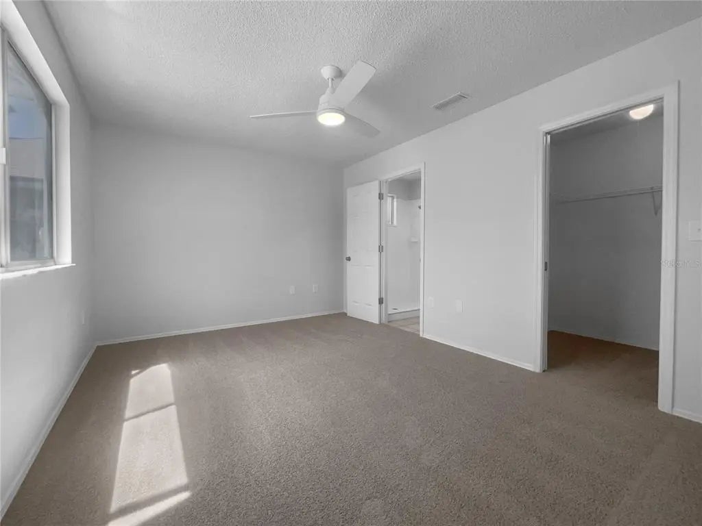 - Interior FeaturesCeiling Fan(s), Kitchen/Family Room Combo, Primary Bedroom Main Floor, Solid Surface Counters, Thermostat