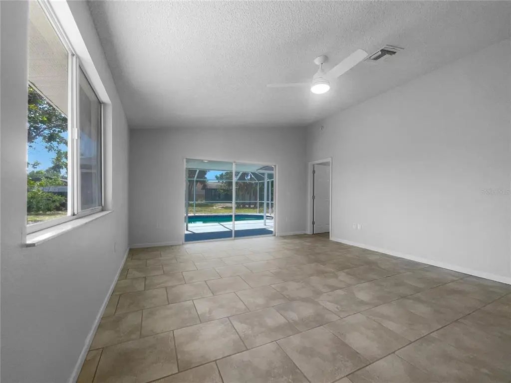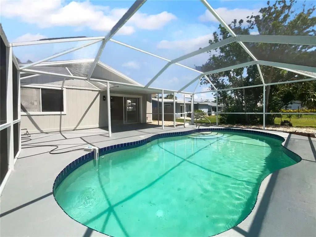One or more photo(s) has been virtually staged. Welcome to Your Dream Home! Step into this stunning 3-bedroom, 2-bathroom pool home with a spacious 2-car garage—perfectly blending comfort, style, and convenience. From the moment you walk in, you’ll be captivated by the bright, airy atmosphere and open layout that makes this home feel both inviting and expansive. The heart of the home features a seamless kitchen/living room combination, ideal for entertaining or simply relaxing with loved ones. The kitchen is equipped with sleek stainless-steel appliances and a breakfast bar with additional seating—great for casual dining or morning coffee. Retreat to the generously sized primary suite, complete with a large walk-in closet and a private en-suite bathroom designed for relaxation. Step outside through sliding glass doors to your own private oasis: a screened-in pool area that’s perfect for year-round enjoyment. The oversized pool offers endless opportunities for fun, entertainment, and unwinding under the Florida sun. Located just minutes from shopping, dining, medical facilities, and a quick drive to local beaches—this home truly has it all! Don’t miss your chance to make this beautiful home your own—schedule your private showing today! One or more photos have been virtually staged.