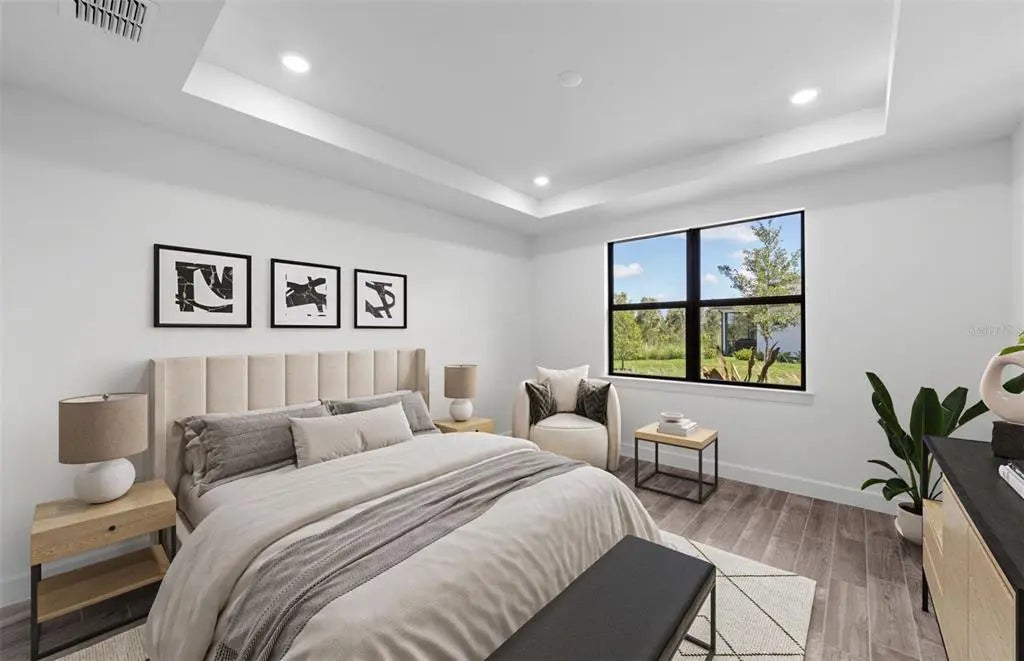 - Interior FeaturesEating Space In Kitchen, High Ceilings, In Wall Pest System, Kitchen/Family Room Combo, Primary Bedroom Main Floor, Smart Home, Split Bedroom, Stone Counters, Thermostat, Tray Ceiling(s), Walk-In Closet(s)
