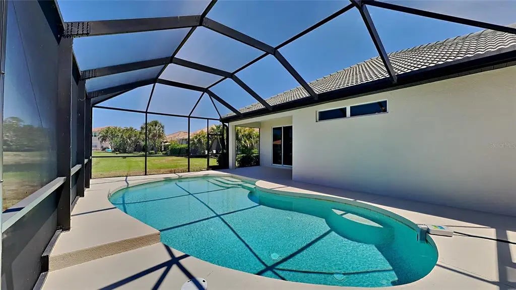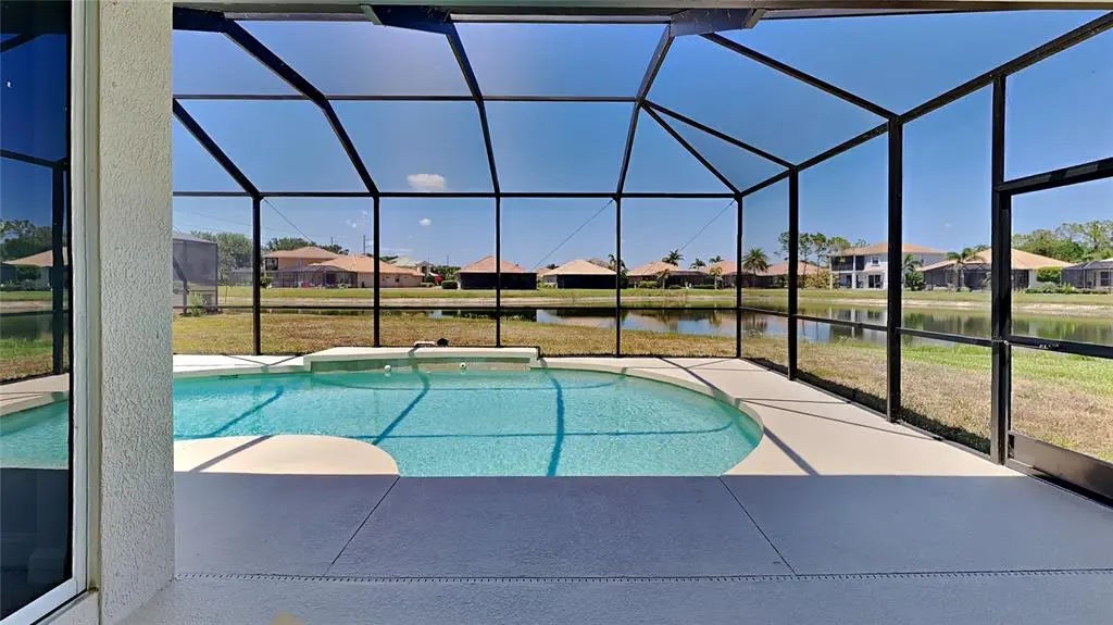 Welcome to this beautifully updated, move-in ready home in the highly sought-after gated community of Stoneybrook in Venice. This 2-bedroom, 2-bathroom home also features a dedicated office and plenty of space for entertaining, all overlooking peaceful backyard water views. Inside, you'll find fresh interior and exterior paint, a fully renovated kitchen with new quartz countertops, brand new cabinets, stainless steel appliances, and updated lighting throughout. The open layout flows seamlessly to the screened lanai and private pool, complete with a new pool pump—ideal for relaxing or hosting guests outdoors. The home also includes newer HVAC and water heater systems, offering peace of mind and efficiency. The separate office provides flexibility for remote work, hobbies, or even a guest space. Stoneybrook is a gated, amenity-rich community with a resort-style pool and spa, clubhouse, fitness center, pickleball, tennis, basketball, playground, and more. With low HOA fees and a lively, welcoming atmosphere, it’s perfect for seasonal or year-round living. Conveniently located just minutes from I-75, you're close to Wellen Park, downtown Venice, top-rated golf courses, and some of the most stunning beaches on Florida’s Gulf Coast.