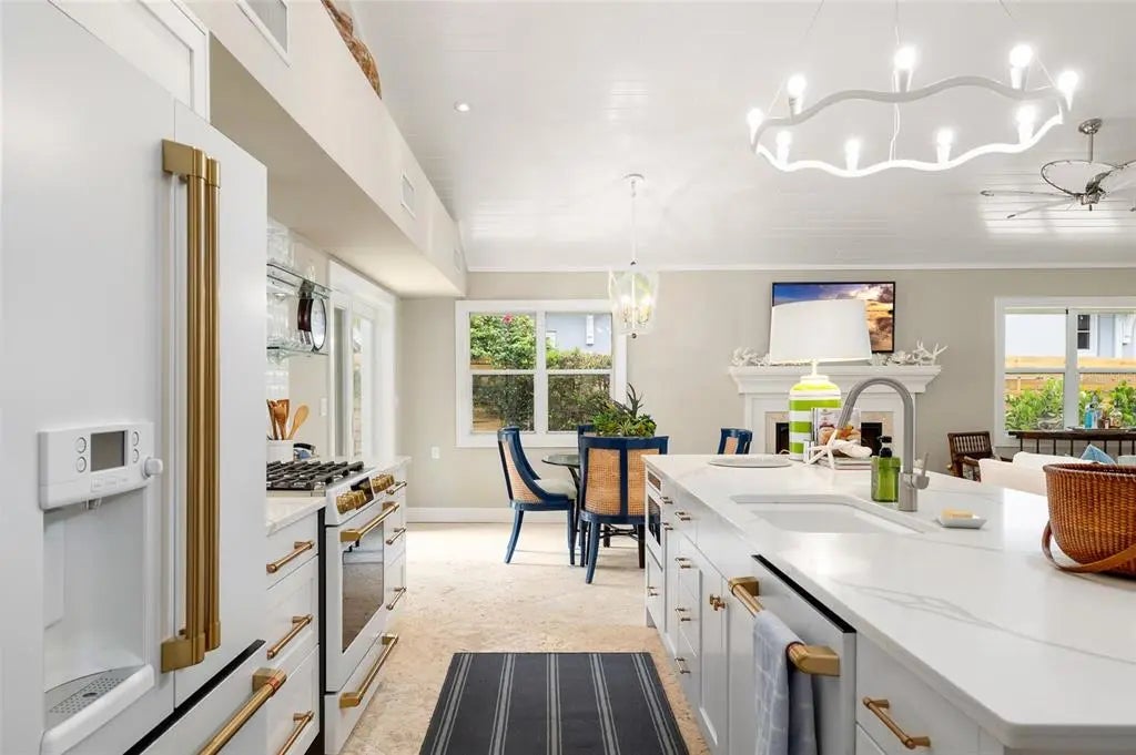 LOCATION LOCATION LOCATION-Walk to everything from this truly exquisite 3 bedroom, 2 ½ bathroom Gilchrist Cottage in the heart of the “Historic District”. Loaded with mid-century charm, updated professionally with modern coastal contemporary influence throughout, all nestled onto a deep 50’ by 150’ lot. The property is being beautifully remodeled nearly new and will be delivered Designer furnished for immediate use! This delightful home offers a very private swimming pool area tucked behind privacy fencing covered with fragrant Jasmine, among just planted new lush and additional landscaping. A standing seam metal roof protects the Cottage along with back-alley access to a large, covered carport. The main living area provides a Great Room concept with Philippine Shellstone flooring throughout and a comfortably spacious 10’ by 28’ old fashioned front porch facing the Gulf of Mexico! Estate Wall, extensive pavers, and luminous night lighting offers a very special ambiance at this superb location. A rare opportunity to own in this very limited heart of the Village