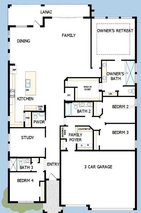 - Interior FeaturesIn Wall Pest System, Kitchen/Family Room Combo, Open Floorplan, Split Bedroom, Thermostat, Tray Ceiling(s), Walk-In Closet(s)