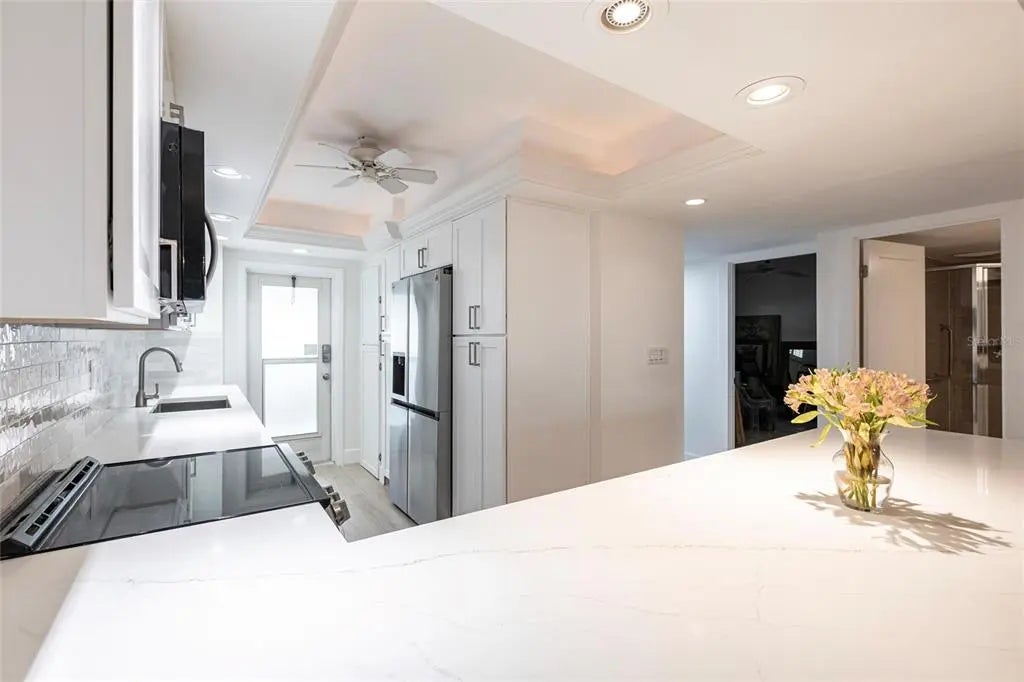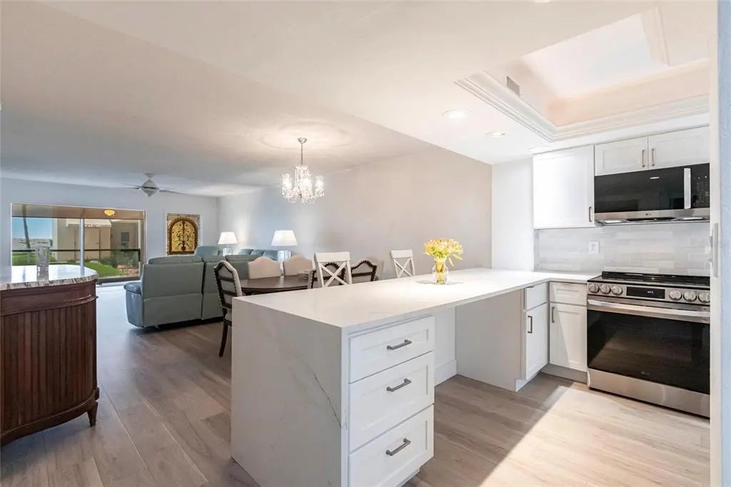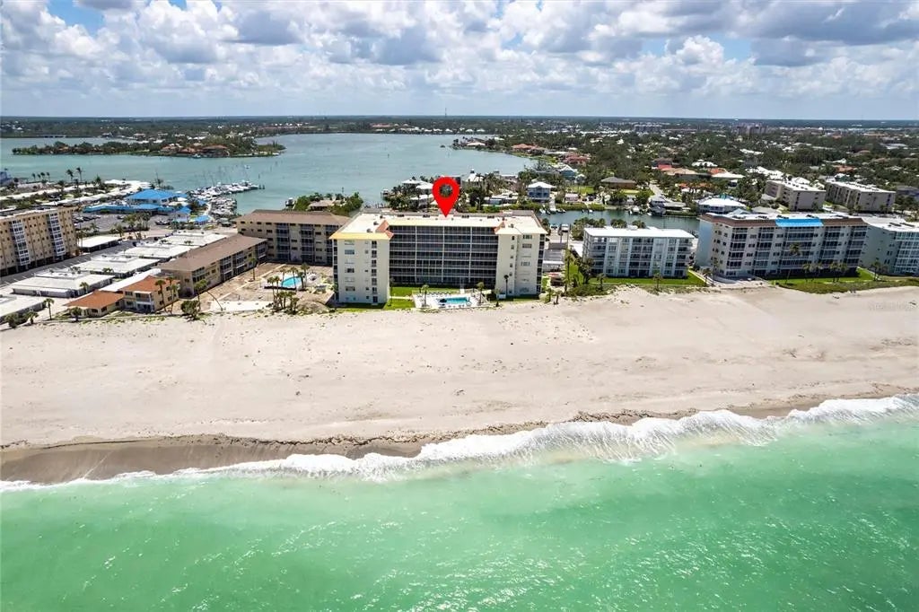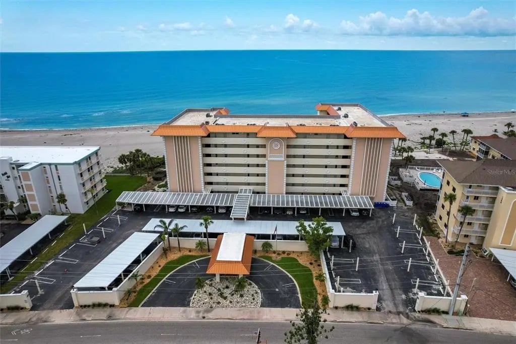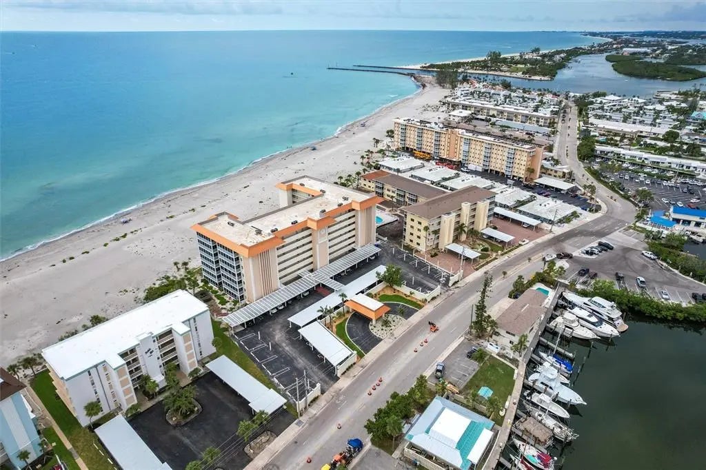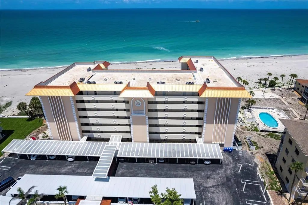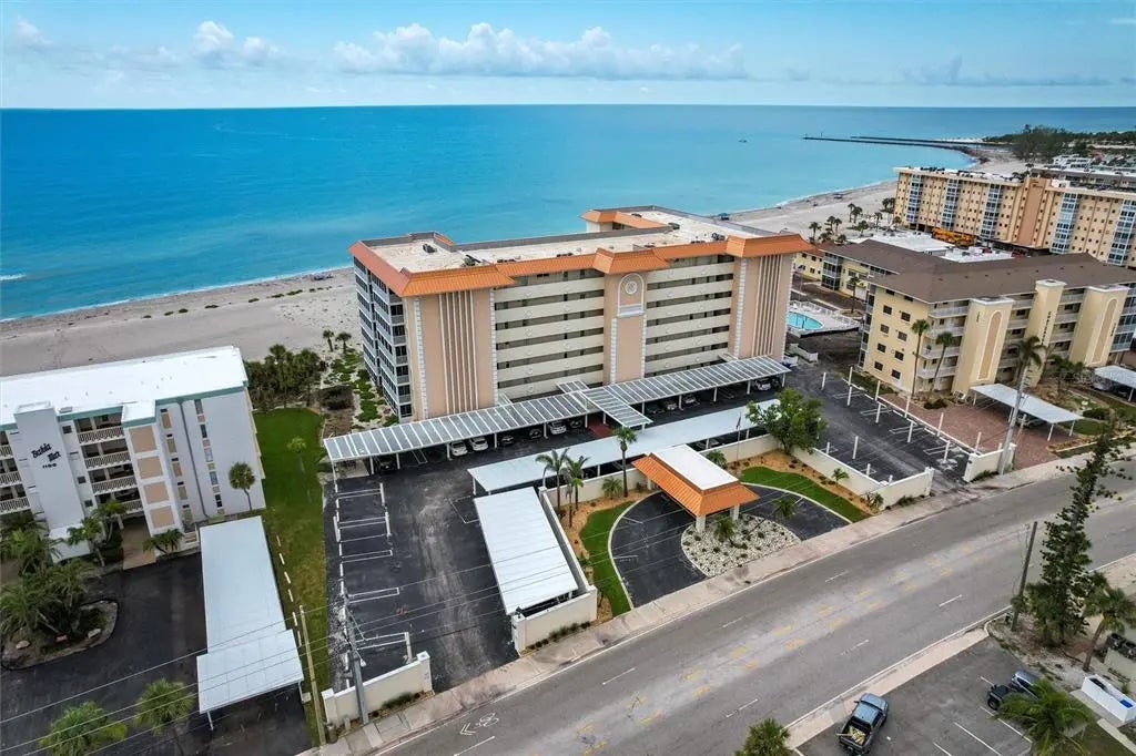 The first thing to ask yourself every morning: Shall I walk out my back door to the POOL or the BEACH? This roomy and bright 2 bed, 2 bath condo offers a serene blend of indoor comfort and outdoor luxury. Easy access to your private patio, extending your living space into the beautiful outdoors where you can step right onto the beach. The kitchen has been completely renovated with quartz countertops and stainless steel appliances! Living room has great size and decorative fireplace. New HVAC will soon be installed, at no cost to you. New hot water heater and sliding glass doors. The unit has 1 private assigned parking space! This elegant building offers a newly remodeled community room with full kitchen for your private parties, TV, game tables for playing cards or games with your friends, book exchange, sliding glass doors out to common grounds and saltwater pool, two separate dual full baths with showers off the pool grounds, barbecue grill, lounge chairs, table, chairs, poolside umbrellas, beach showers, bike rack, canoe and kayak rack, and private indoor mailbox area. There are six laundry rooms available plus hookups in the unit for private laundry. Nestled on Historic Venice Island, you're not just buying a condo; you're embracing a lifestyle. With easy access to dining, shopping, live music, yoga on the beach, boating and other outdoor activities, this location is unbeatable for those looking to enjoy the Southwest Gulf Coast of Florida. Marina and Venice Yacht Club right across the street. Freedom Boat Club a block away. Seize the opportunity to own a slice of paradise on Venice Island. Ideal for those seeking a vacation home, a permanent residence, or a rental investment. We just can't wait for you to live your dream and experience the allure of beachfront living at The Towers. Private storage cage, 5-by-4-foot, to lock personal items, bikes and more. 2-pet friendly policy and minimum 3-month rental rule provide flexibility for owners. No special assessments in the pipeline. All previous paid for. Carport roofs to be done shortly. Building earmarked to be painted. Furniture negotiable in unit.