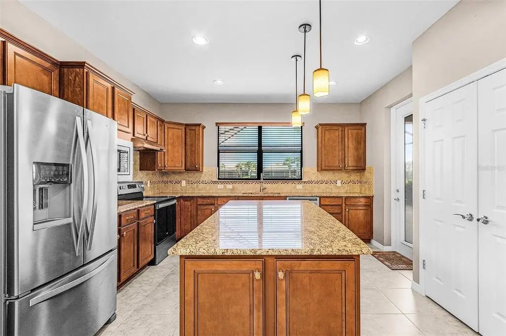 Welcome to this beautifully situated TAFT model home, nestled along the water and ready for its next owner. Combining affordability with a prime location, this 2-bedroom residence also features a flexible bonus room—perfect for use as a home office, creative studio, or cozy den. Step inside and immediately embrace the relaxed Florida lifestyle. The kitchen is both stylish and functional, boasting ample cabinetry, a generously sized island, granite countertops, pendant lighting, stainless steel appliances, a custom tile backsplash, and a walk-in pantry. The thoughtful split floor plan ensures privacy, with the guest bedroom and bath on one end of the home, while the primary suite is tucked away on the other. The owner's retreat includes a spacious walk-in closet, dual sinks, and a large walk-in shower. Out back, the extended lanai showcases tranquil water views and an inviting in-ground pool—ideal for unwinding or entertaining. Added durability and safety come with hurricane-impact windows and doors. Residents of IslandWalk enjoy a low-maintenance lifestyle, with HOA fees covering lawn care, cable, WiFi, access to amenities, and round-the-clock security. This active Venice community features a wealth of amenities including two resort-style pools, a lap pool, 12 pickleball courts, 8 Har-Tru tennis courts, a dog park, basketball court, playground, community garden, and more. A full-time activities director organizes events, clubs, and social gatherings throughout the year. Two clubhouses and an event center serve as the community’s hub, surrounded by miles of scenic trails, golf cart paths, Venetian-style bridges, and peaceful waterways. Nearby attractions include the Atlanta Braves Spring Training stadium and the new marketplace with Publix, restaurants, and shops just a short ride away. Wellen Park’s downtown district adds even more appeal with its 80-acre lake, waterfront dining, boutique shopping, rooftop lounges, splash pad, playground, and public town hall hosting live performances. Future additions like a hammock grove and dedicated food truck park are also on the way. Homes with pools in this area are rare—don’t miss your chance to see what makes this one so special!