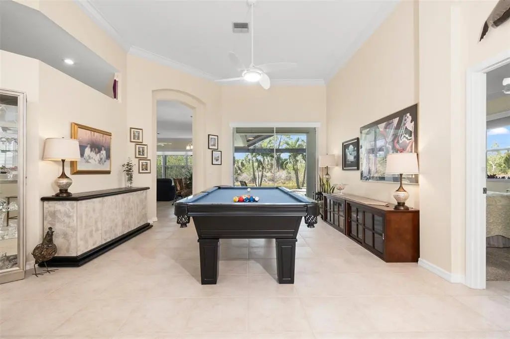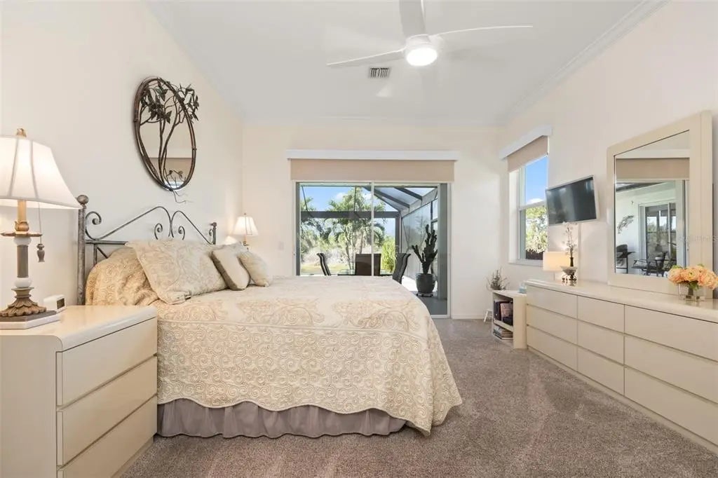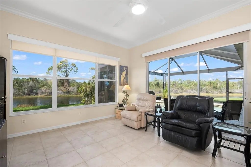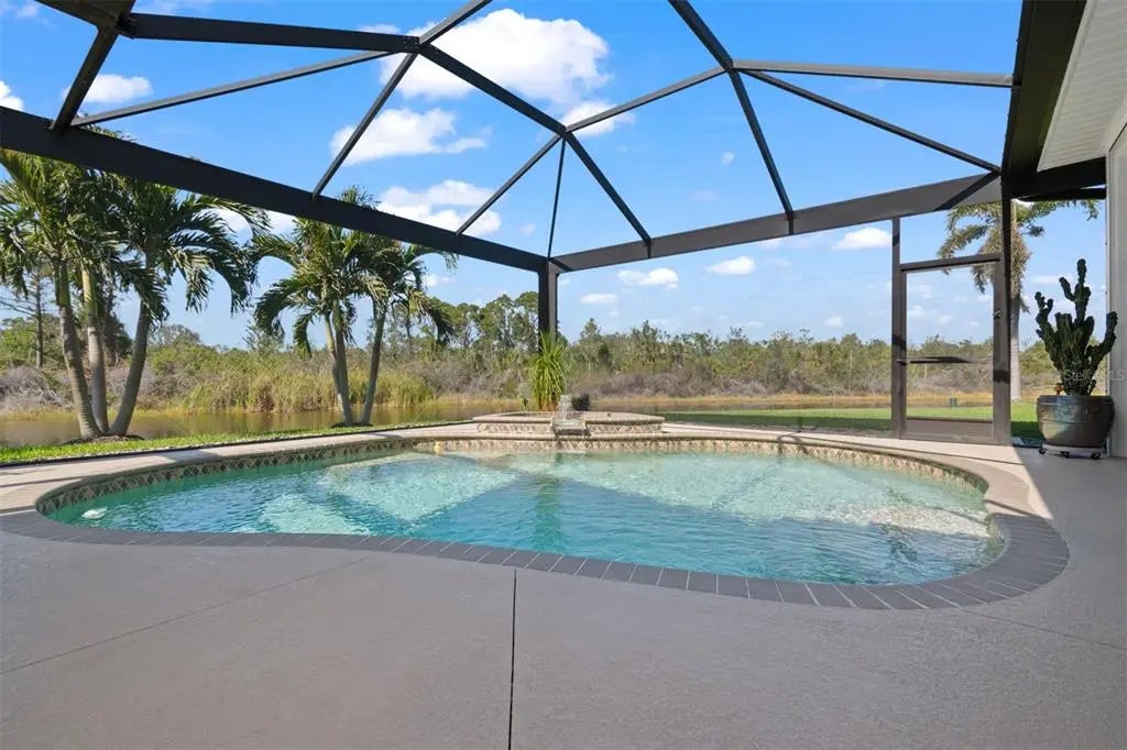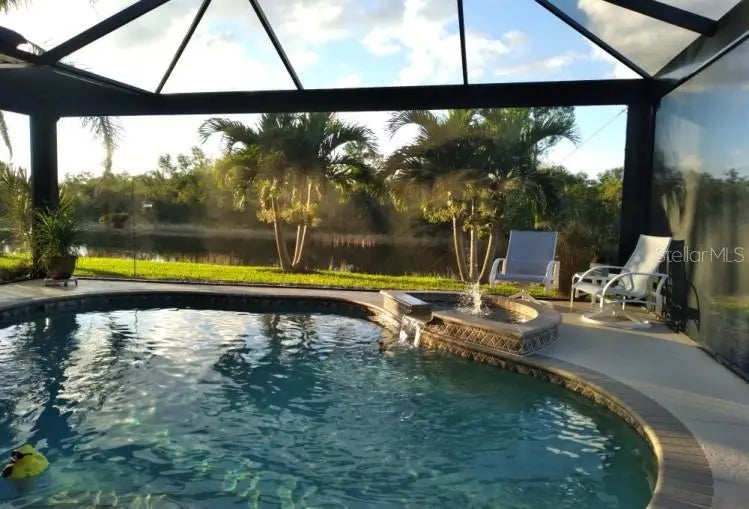 Under contract-accepting backup offers. Spectacular Waterfront Retreat with 164 Feet of Private Views Experience breathtaking sunsets and serene privacy from this beautifully maintained J&J-built home, perfectly situated on a premium lot with 164 feet of waterfront and preserve views. Freshly enhanced with new front landscaping and a new price, this light-filled, airy residence offers the ultimate in Florida living. Step into the grand foyer with soaring ceilings that lead directly to sliding glass doors framing panoramic views of the heated saltwater pool, tranquil lake, and lush preserve beyond. Natural light floods the home through elegant half-moon windows in the living and dining rooms, now updated with new plantation shutters and remote-controlled ceiling fans. The entire interior has been freshly repainted and upgraded with all-new hardware. The open-concept kitchen is a chef’s delight, featuring a new oven, hands-free faucet, microwave with exterior exhaust vent, reverse osmosis system, and a new Rheem water heater. The breakfast nook with an aquarium window overlooks the pool and preserve, while a spacious breakfast bar opens into the family room—ideal for entertaining or relaxing. The family room features a full wall of triple windows, another set of sliding doors, and electric window treatments with Sun Tamer window film for added comfort.Retreat to the impressive master suite, which offers direct access to the lanai and more stunning views. The suite has been upgraded with new carpeting, dual walk-in closets, two remote ceiling fans, new ADA-compliant toilet, dual vanities with Moen faucets, updated hardware, and a sensor exhaust fan for added convenience. The opposite wing of the home features two newly carpeted guest suites with shared bath, sensor exhaust fan, and updated fixtures. One suite includes a built-in Murphy bed and ample storage, all enclosed with a pocket door for complete privacy. Outdoors, the screened lanai showcases a newly painted floor, remote ceiling fan, and new marble waterfall feature by the heated saltwater pool—complete with new Pentair pump and saltwater chlorinator. Lush landscaping with new palms, decorative stones, and pavers completes this peaceful outdoor oasis. Located in a deed-restricted community offering residents access to a clubhouse, pool, tennis courts, and pickleball, this home is just minutes from shopping, dining, downtown Venice, and Venice Beach. This home truly has it all—panoramic views, modern upgrades, and unmatched tranquility. Come see it in person to fully appreciate its beauty and lifestyle.