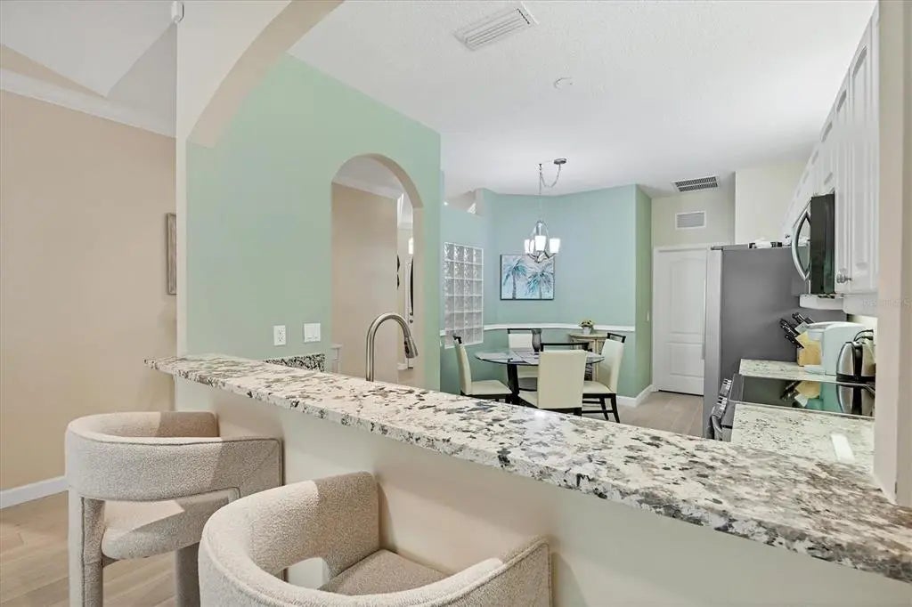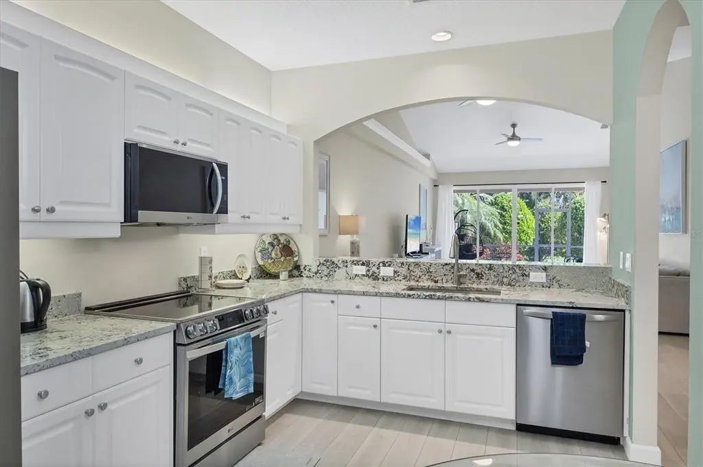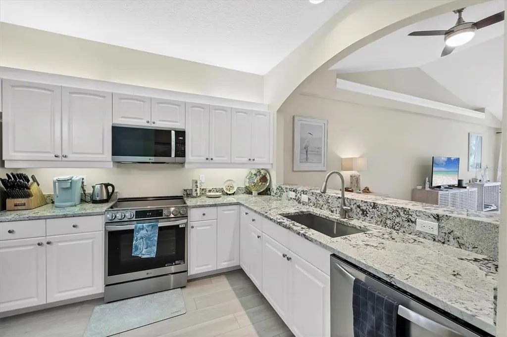 Stunningly Remodeled Villa – A Must-See! This beautifully remodeled Villa stands out as the most impressive in the area! Every detail has been thoughtfully upgraded, featuring high-end vinyl flooring from Floors & Decor, luxurious granite countertops sourced from Brazil, and brand-new stainless steel LG appliances including an LG oven with a built-in air fryer, Stylish new ceiling fans and modern lighting fixtures add to the contemporary feel throughout. Enjoy the serene garden view—lush, mature trees create a picturesque setting unique to this Villa. Just 100 feet from the saltwater community pool, the location couldn’t be more ideal. Just 17 minutes from the stunning Gulf Coast beaches and only 9 minutes from Wellen Park's vibrant boutiques, restaurants, live music, outdoor activities, fishing spots, and weekly farmers markets! Compare this to other Villas in the area with old and outdated finishes and you’ll quickly see the difference. This one is truly in a class of its own. A must-see!