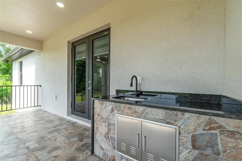 - Exterior FeaturesFrench Doors, Garden, Hurricane Shutters, Lighting, Outdoor Grill, Outdoor Kitchen, Private Mailbox, Sliding Doors