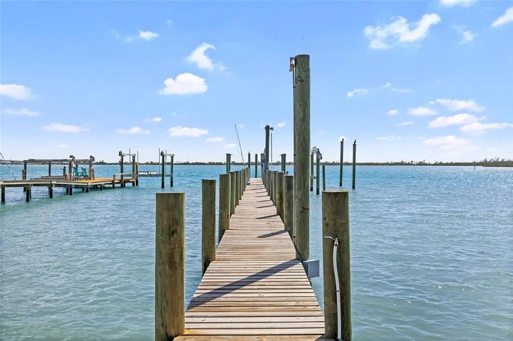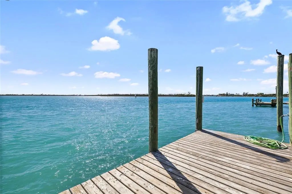 Bayside living at its finest! This beautifully appointed 3-bedroom, 2-bath waterfront home with private dock offers the perfect blend of coastal charm, comfort, and island adventure. Ideally positioned along the bay in an area renowned for exceptional dock fishing and shrimping, this property invites you to experience the very best of island life. The private dock, complete with a boat lift, lighting, and water, provides effortless access to the surrounding waters—perfect for boating, fishing, or simply enjoying peaceful sunsets over the bay. From the dock, step into a tastefully decorated and spacious home designed with relaxation and entertaining in mind. The main living level features an open and inviting floor plan that seamlessly connects the great room, kitchen, and breakfast bar, creating an ideal gathering space for family and friends. Just beyond, a large lanai overlooking the bay offers the perfect setting for morning coffee, evening cocktails, or simply taking in the tranquil waterfront views. This level also includes additional seating with a bar area, a guest bath, and a comfortable primary bedroom with its own private bath. Upstairs, you’ll find two additional bedrooms and another full bath. One of the bedrooms opens through glass doors onto an expansive open sundeck, where you can soak up the warm Gulf breezes and panoramic island skies. The home comfortably sleeps eight, making it ideal as a family retreat or vacation getaway. Just a short stroll away, deeded beach access leads you to the pristine, uncrowded shoreline where Little Gasparilla Island is famous for its powder-soft sand and extraordinary shelling. Enjoy morning jogs along the surf, long sunset walks, or afternoons spent collecting shells along miles of untouched beach. Whether your perfect day includes boating, fishing, paddle boarding, swimming, sunbathing, beach combing, or simply unwinding in peaceful seclusion, this home effortlessly accommodates the ever-changing needs of family and friends. ***Little Gasparilla Island is a bridgeless barrier island accessible only by boat***