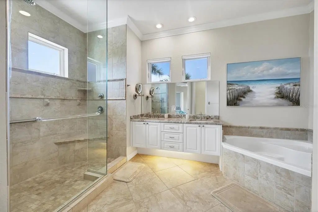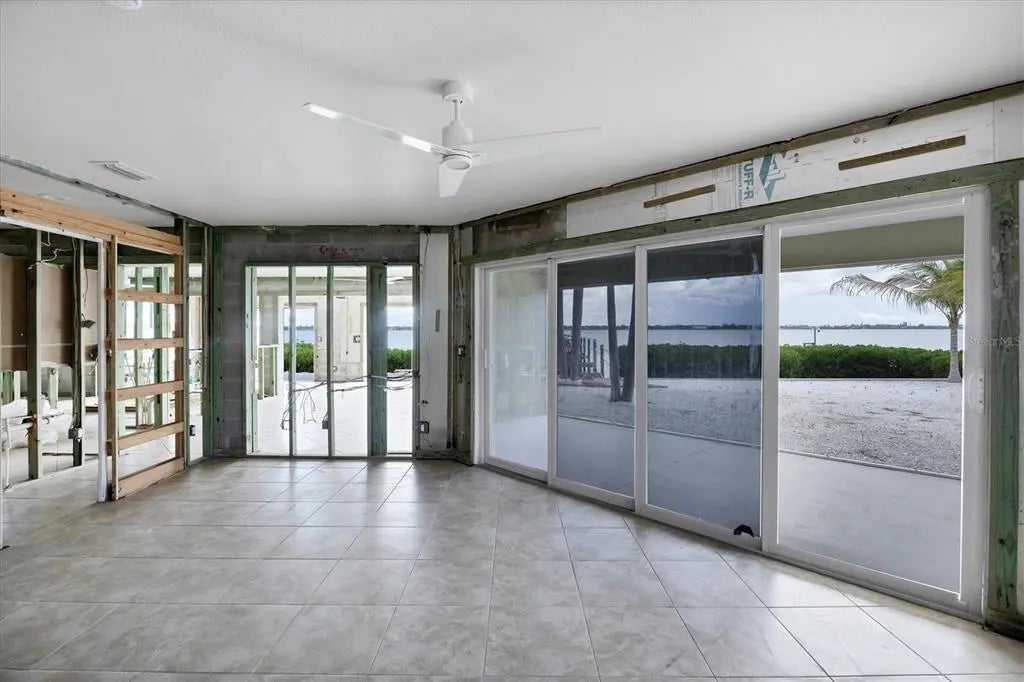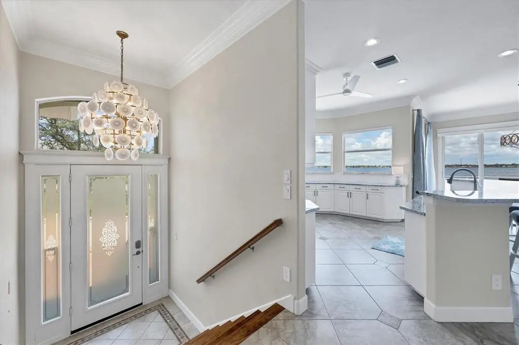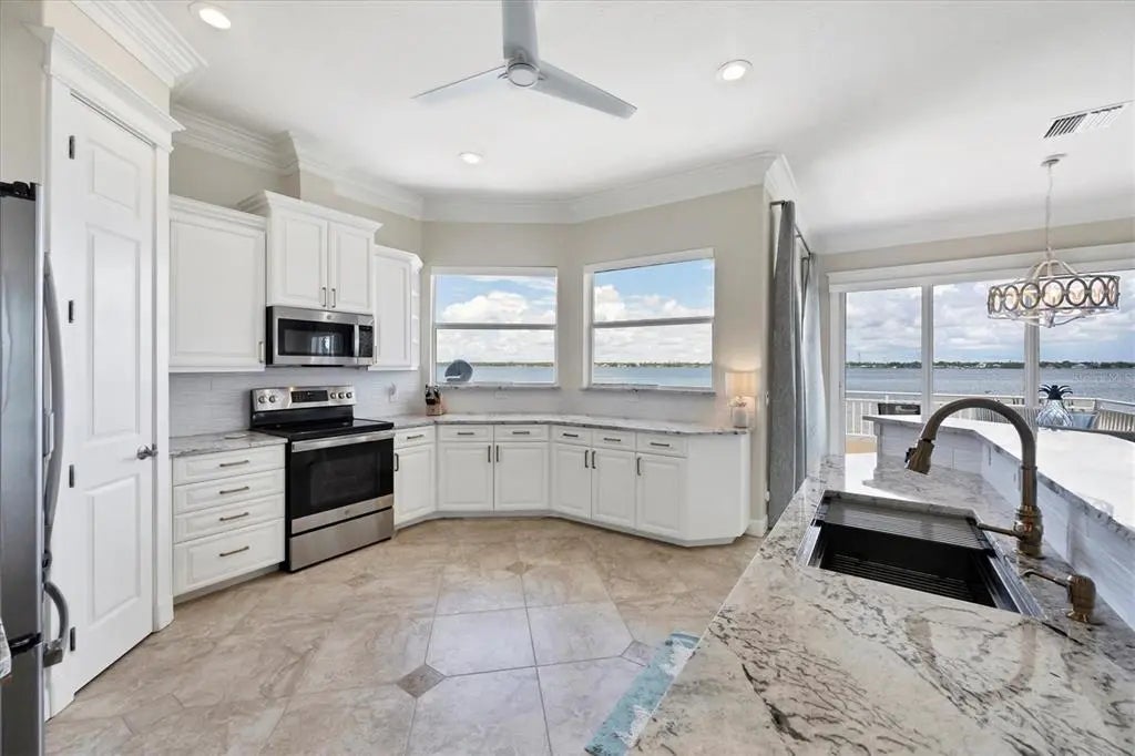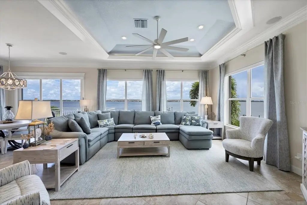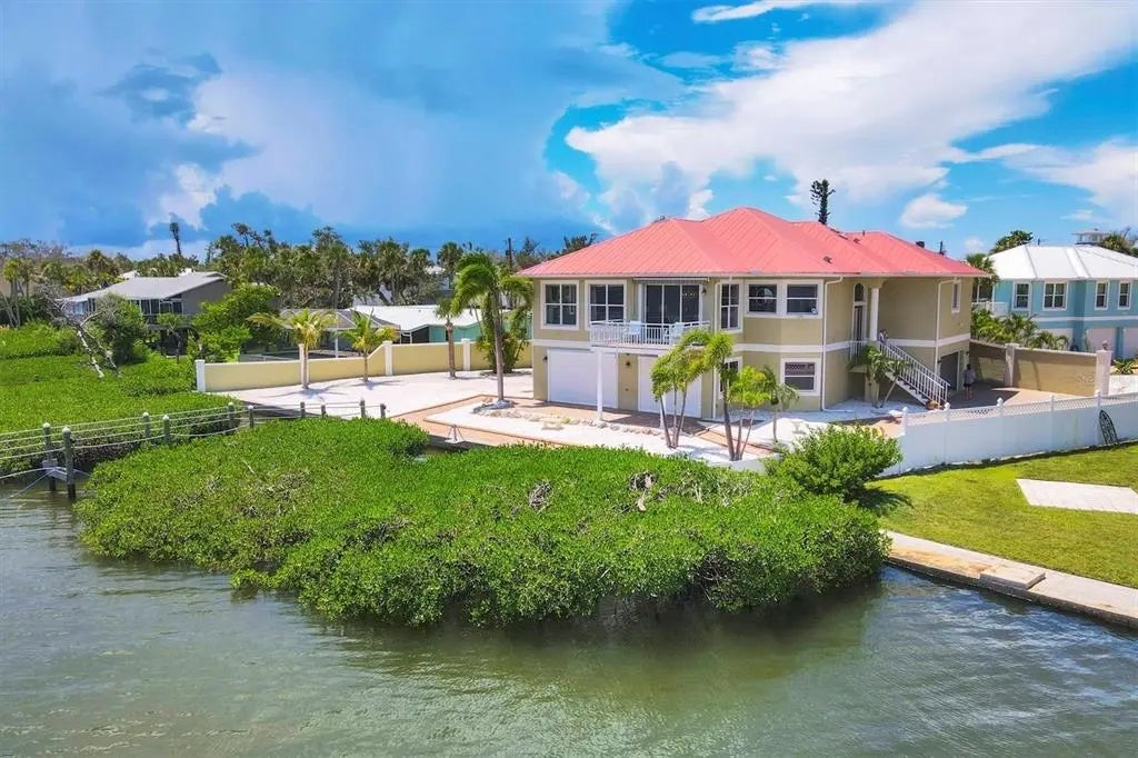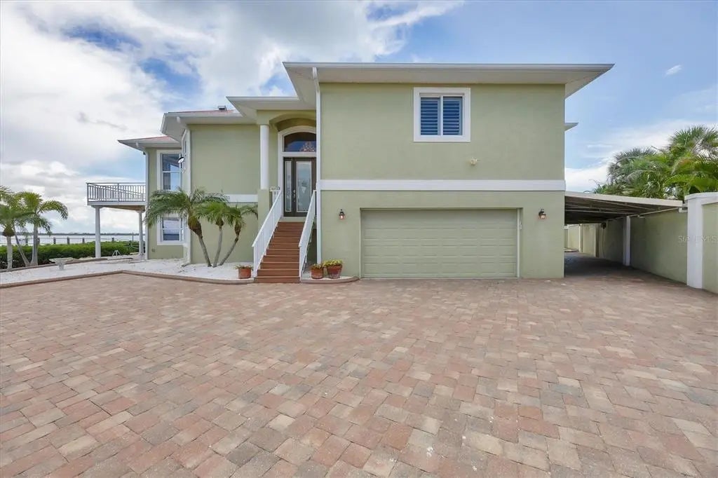 PARADISE FOUND!!! With breathtaking panoramic unobstructed views of Lemon Bay this elevated home offers the luxury and elegant coastal lifestyle you have been dreaming of. Located at the end of very quiet street you will enjoy peace and tranquility while watching dolphins, manatees, and other native Floridian wild life along with boating, fishing, kayaking and other water activities. Property being sold completely furnished, turn key and move in ready. Upon entering through the beveled glass doorway you will be greeted by the beautiful spacious open living area. Abundance of large windows and sliding door allows for plenty of natural light. Gourmet kitchen is a cooks dream with plenty of cabinetry, closet pantry, granite countertops, stainless steel appliances and expansive breakfast bar. Adjoining dining and family rooms make it perfect for entertaining. Family room features soaring trey ceilings, ceiling fan, custom crown molding, recessed lighting, and ceramic tile floor. Relax and enjoy the sunrise with your morning coffee or unwind at the end of the day with a evening beverage on the newly redone east facing balcony/deck with retractable awning. Primary bedroom is large with walk in closet, tray ceiling, and en-suite bath with dual vanities, separate glass enclosed shower, and soaking tub. Sliding doors off bedroom opens to screened private balcony with water views. Hallway leads to two additional large bedrooms each with walk in closets and an additional bathroom. Amble size laundry room with full size washer and dryer. Norman plantation shutters enhance windows. Lower level was damaged by hurricane Milton but is a blank slate with numerous possibilities such as open covered patio, storage area, game room, etc. Electronic hurricane shades have recently been installed for added protection and peace of mind. Garage boasts space for 3 cars and also additional space for workshop or storage. Attached carport can accommodate 2 cars for additional parking or boat storage. Brick paved driveway and maintenance free shell yard along with landscaping enhance the exterior of property. The 200 foot private dock sustained damage from hurricane Milton and is in need of installation of new planks. Davit lift is in as is condition. There is a community deeded beach access steps away to enjoy the Gulf beach and beautiful sunsets. Home is meticulously maintained, better than new!! Experience the epitome of Florida waterfront living, Make this your new home and make memories to share and last a lifetime.