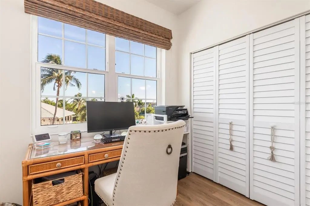 Coastal luxury meets everyday convenience at Boca Vista Harbor. This rare end-unit condo is perfectly positioned to capture sweeping views of Coral Creek, Gasparilla Sound, and the Intracoastal, all just minutes from Boca Grande’s pristine beaches, shops, and dining. Featuring 3 bedrooms and 2 bathrooms, this residence blends modern updates with resort-style amenities. Inside, you’ll find driftwood luxury vinyl flooring throughout, fresh interior paint, updated 5.5” baseboards, new LED lighting and ceiling fans. Enjoy lots of natural light with three additional windows that this end unit offers. The re-designed kitchen offers a spacious, open layout with a new LG stainless steel appliance package. The primary suite is a peaceful retreat with stunning water views, 2 large walk-in closets, and an en-suite bath featuring dual vanities and a walk-in shower. Outdoors, the screened lanai,with hurricane shades is ideal for morning coffee or evening sunsets, and all windows and sliders are hurricane impact rated for peace of mind. A private 1-car garage with new opener adds convenience. Recent exterior updates include a new roof, new stucco siding, refinished pool and spa, and refreshed tropical landscaping. Boca Vista Harbor amenities include a gated entrance, heated pool and spa with poolside grills, tennis and pickleball court, kayak and paddleboard launch area, and direct access to a full-service marina with boat slips available when offered. This condo is ideal as a primary residence, vacation retreat, or lucrative rental, with minimum 3-day rentals permitted. Water, sewer, and trash are included in the HOA fee. Start living the Boca lifestyle—schedule your private showing today!