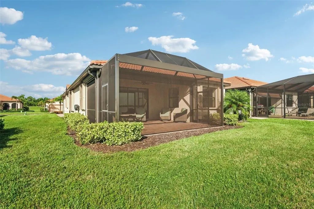 Under contract-accepting backup offers. Breathtaking lake views and resort-style living set the tone for this beautifully designed Roma floor plan home, offering 2 bedrooms, 2 bathrooms, a versatile den, and a spacious 2-car garage across 1,907 sq. ft. of living space. Step inside to find upgraded light fixtures, custom window treatments, and a gourmet kitchen with granite countertops and an oversized island—perfect for entertaining or casual dining. The open layout flows seamlessly to the extended screened paver lanai with a clear-view panoramic screen, where you can unwind while taking in the tranquil lake views. What truly sets this home apart is the lifestyle it offers. Your HOA fee already includes two golf memberships to the community’s 18-hole championship golf course, unlimited play, access to a private golf clubhouse, and exclusive entry to the 19th Hole Restaurant—the community’s third dining venue. Beyond golf, the amenities are unmatched. Surrounded by 1,300 acres of preserved land, the community provides a serene and natural backdrop while delivering resort-style luxuries: a sparkling pool and spa with a Tiki Bar, tennis and pickleball courts, bocce ball, a coffee lounge, a library, a card room, fitness and wellness classes, a day spa, and a grand clubhouse with full dining. This home is more than a residence—it’s a retreat that combines elegance, comfort, and a vibrant social lifestyle.**Free 1/0 Interest Rate Buy Down when using our preferred lender**