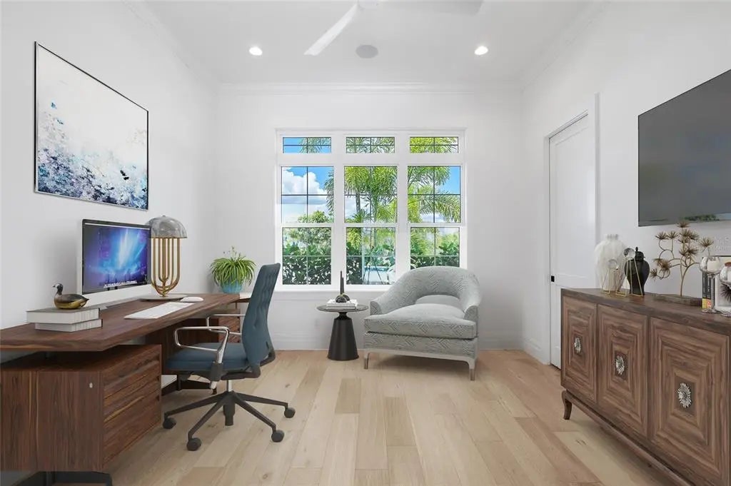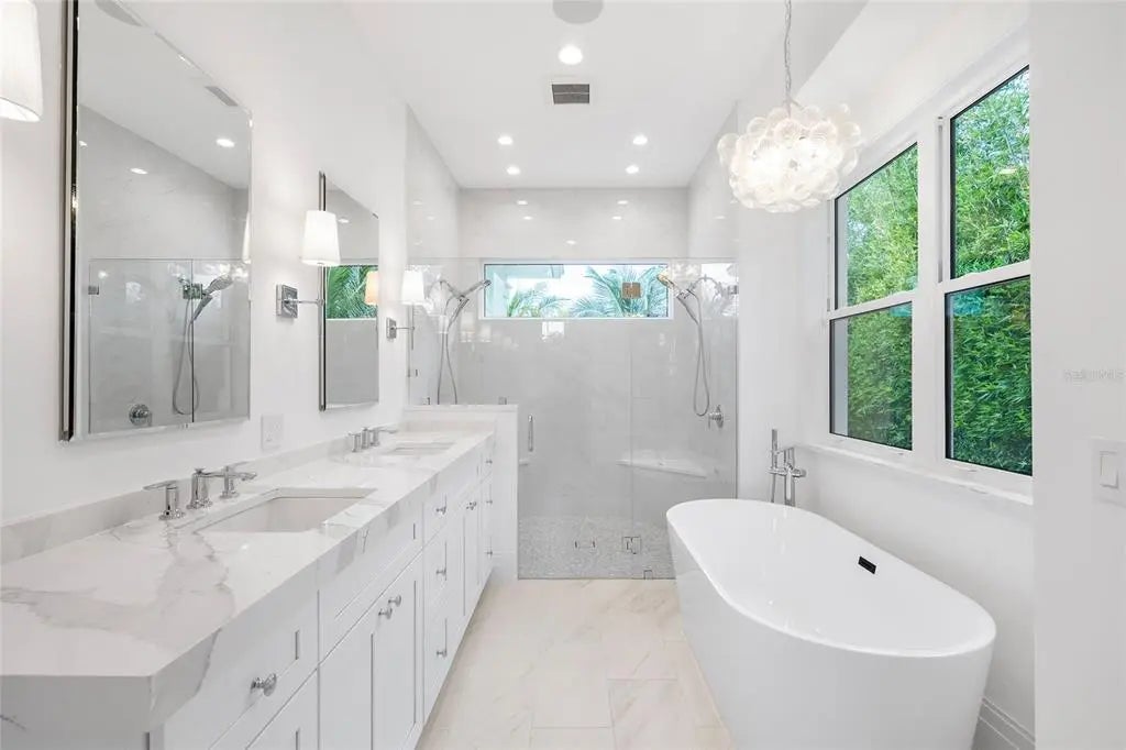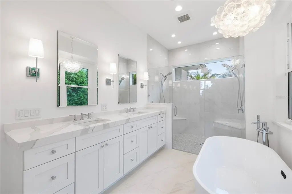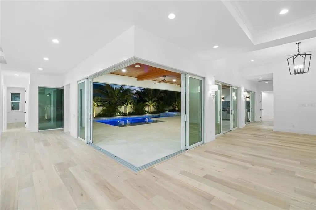 Modern Coastal Luxury - NEW HOME - Just Completed! Discover one of Boca Grande’s newest and most exclusive homes on the prestigious North Shore of Gasparilla Island. This brand-new 5-bedroom, 5-bathroom estate (each bedroom featuring en-suite bathrooms) offers over 4,000+ sq. ft. designed for effortless coastal entertaining on one level. Set at the end of a private living cul-de-sac and positioned on one of the highest elevated lots on the island, the property is surrounded by masonry privacy walls and features professionally designed lush tropical landscaping. Once inside, you’ll find soaring ceilings, custom millwork, 7.5” white oak flooring, and impact-rated sliders that blend indoor and outdoor living. A unique zero-post sliding glass door system leads to an expansive covered lanai (600+ sq. ft.) featuring a retractable Phantom Screen, custom outdoor kitchen with Coyote appliances, while overlooking the elegantly designed pool and spa. The home is an entertainer's dream featuring a chef’s inspired kitchen complete with designer cabinetry, Thermador appliances, extra-large workstation sink, dual dishwashers, quartz countertops, and a 12' center island perfect for hosting. Additional highlights include a wet bar and prep area coupled with a wine chiller tower, beverage center, spacious walk-in pantry, and discreet mudroom/laundry area. The primary suite is thoughtfully designed offering a majestic view of the pool and backyard with separate walk-in closets. The primary bathroom is a serene retreat offering heated floors, an oversized shower and soaking tub, along with custom Robern medicine cabinets and designer lighting. The additional en-suite bathrooms offer their own privacy and Bedroom 2 can also serve as a den or office if desired. Guest suite bathrooms provide private comfort with curbless walk-in showers and custom designer finishes throughout. Designed by nationally recognized T.A. Krebs Architects, and crafted by preferred island builder L.J. Silva Construction, this 2025 masterpiece combines masonry block construction with energy-efficient spray foam insulation, premium concrete tile roofing, "cool touch" Shellock pool and lanai pavers, and a 24 kW Generac generator. With an attached 3-car garage, the home has ample storage for your Moke or golf cart and other outdoor island toys. Smart home technology includes an app-controlled pool/spa & fireplace lighting, irrigation, sound pre-wiring throughout and a 75" Samsung Frame Pro TV in the family room. Deeded beach access is just steps away and ownership boat dockage with lift capability (up to 65') is just across the road, for easy and quick access if desired. This estate offers both tranquility and accessibility to the island’s best amenities. Along with Coral Creek Jet Center/Airport and a Tom Fazio Signature Golf Course just across the Bridge. A few photographs are virtually staged. Experience the pinnacle of Boca Grande living - modern coastal luxury at its finest.