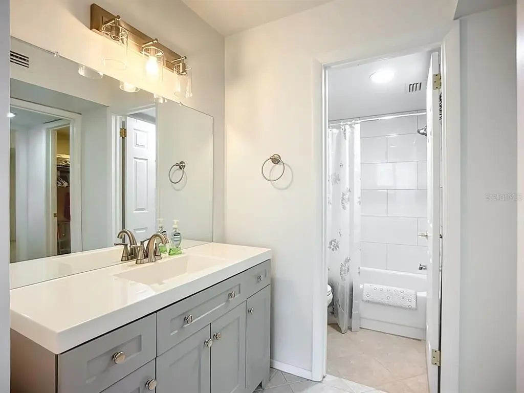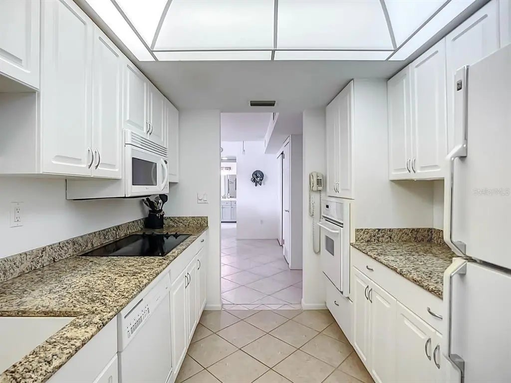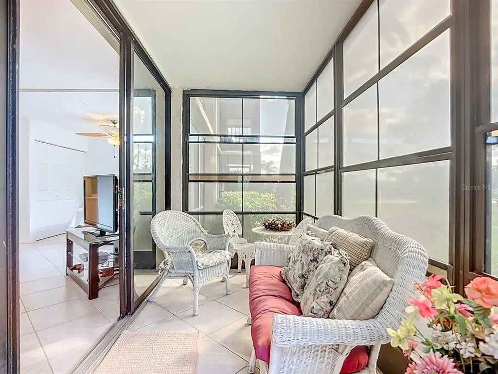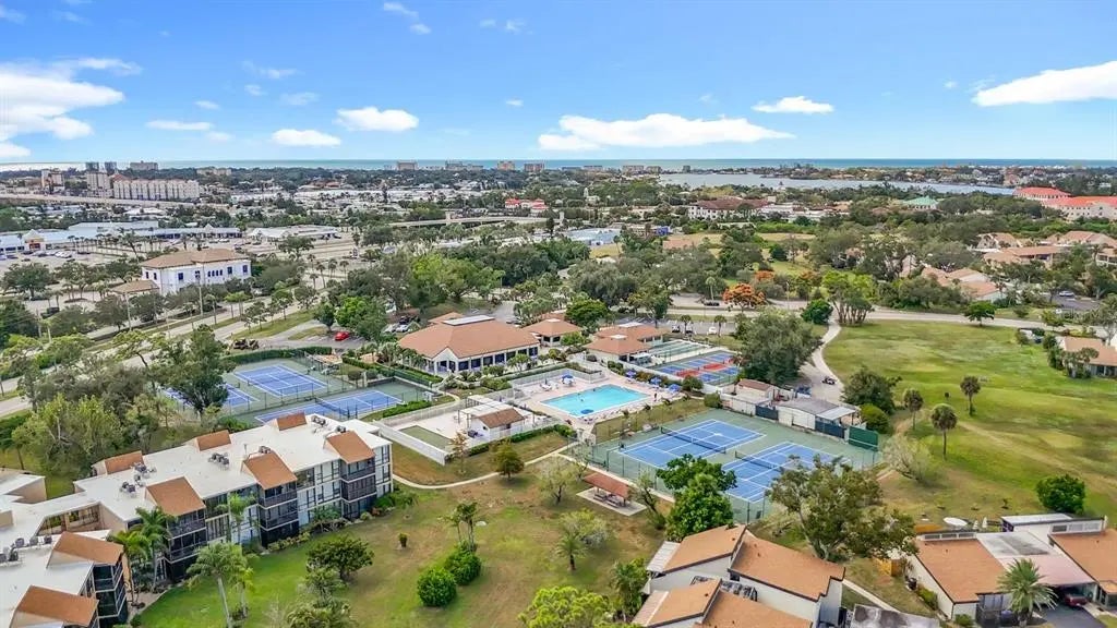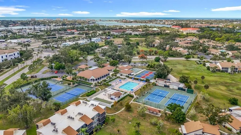 Immaculate turn-key 2-bedroom, 2-bath ground floor condo featuring top-rated upgrades, premium fixtures and modern finishes, floor-to-ceiling windows, and tile throughout. Flexible floor plan allows for two en-suite bedrooms, or an office/den area with its own bath. The gourmet kitchen boasts premium granite countertops, custom soft-close cabinetry, a built-in oven, and a countertop cooktop. Both bathrooms have been beautifully remodeled with raised vanities, elegant cabinetry, and top-tier tile surrounds. Open-concept living area with an abundance of natural light. Spacious bedrooms with ample closet space, including a walk-in closet in the primary en-suite bedroom. Other storage spaces include a linen closet, a broom closet, and an indoor utility closet. A screened lanai with added plastic surround windows affords the luxury of extending your living space, even on rainy days. The location can't be beat and the view is amazing! This unit looks out to the tennis courts and path to the pool. Just steps away from the Bird Bay Clubhouse and community center, tennis and pickleball courts, and fitness center. Conveniently located near shopping, dining, and major commuter routes. Move-in ready and designed for comfort and style—this condo comes turn-key and includes everything you need to live in it full-time, as a snowbird, or a seasonal rental. See it today!